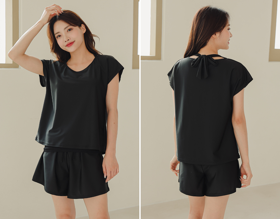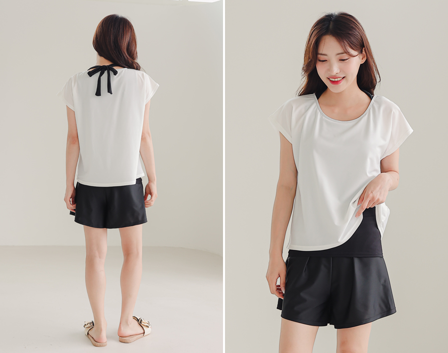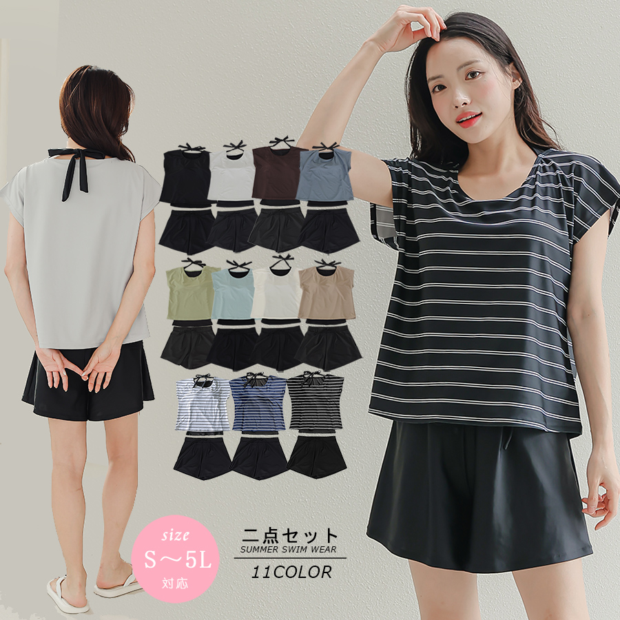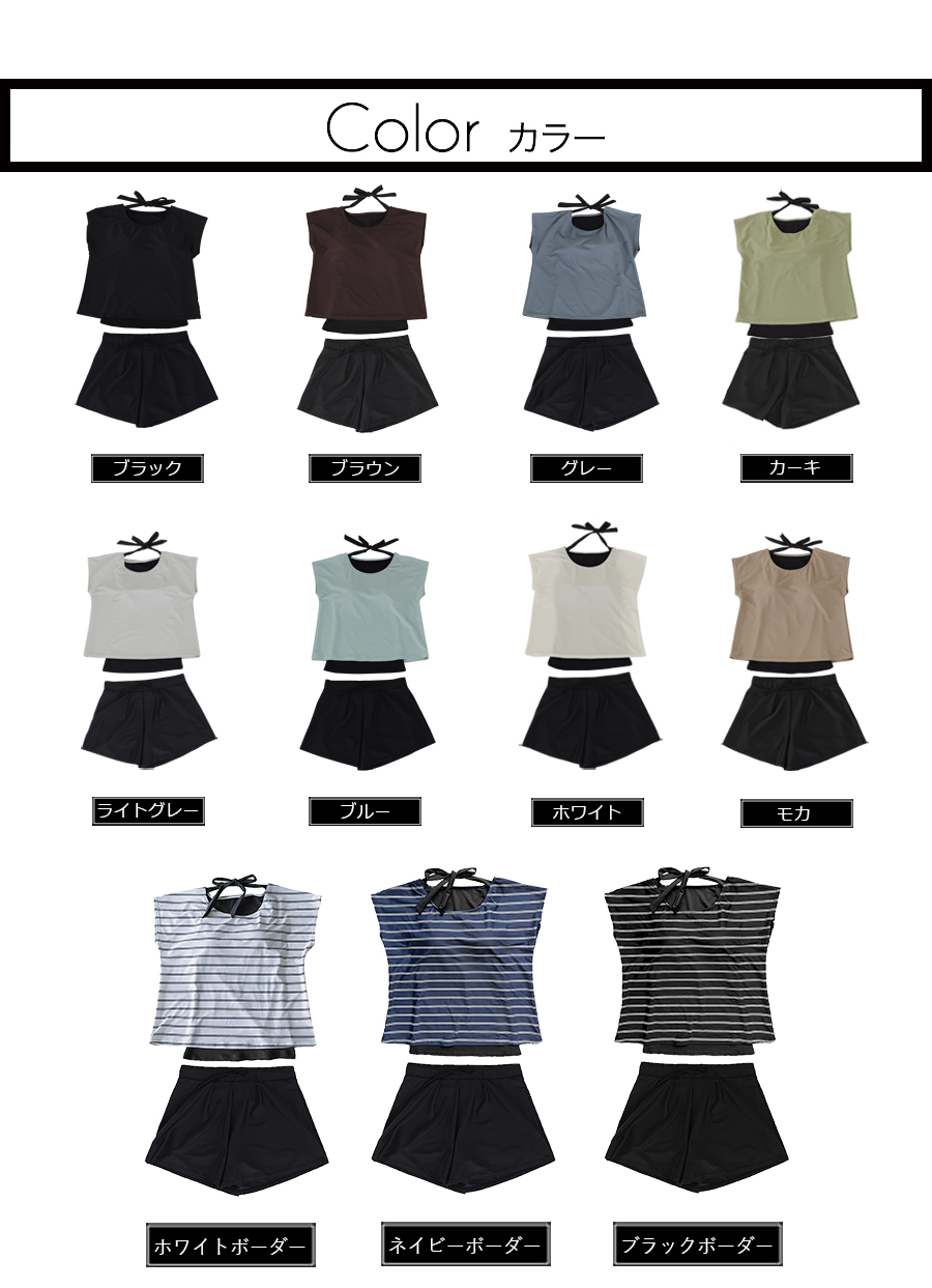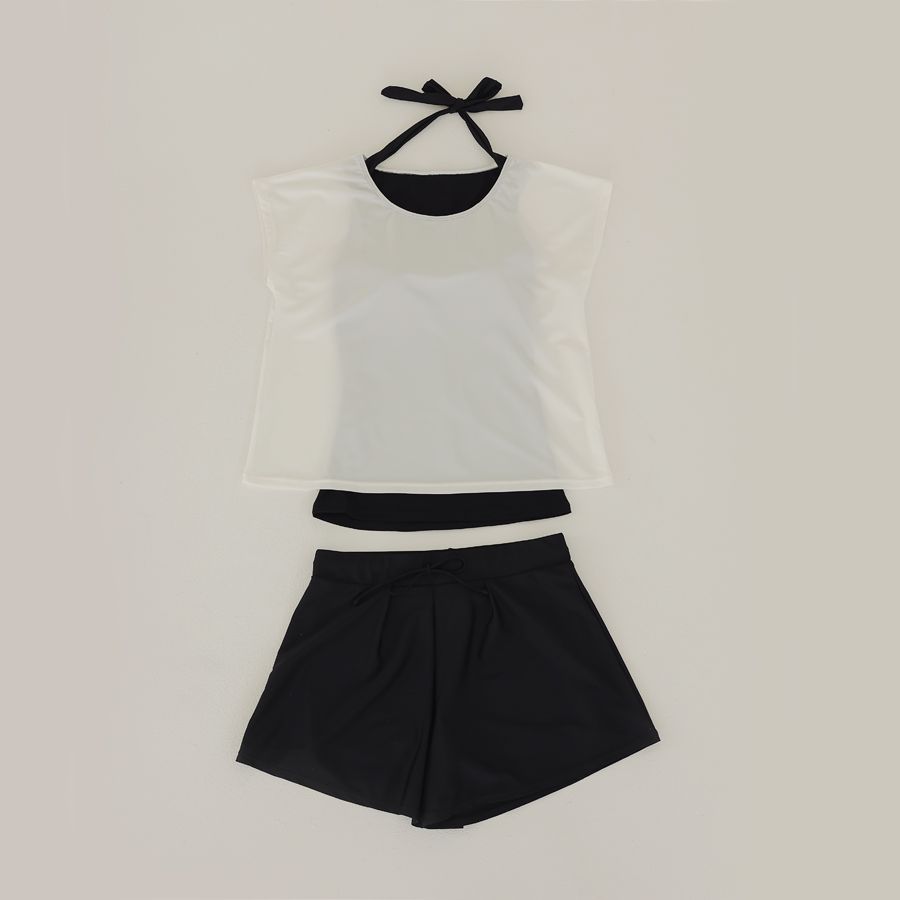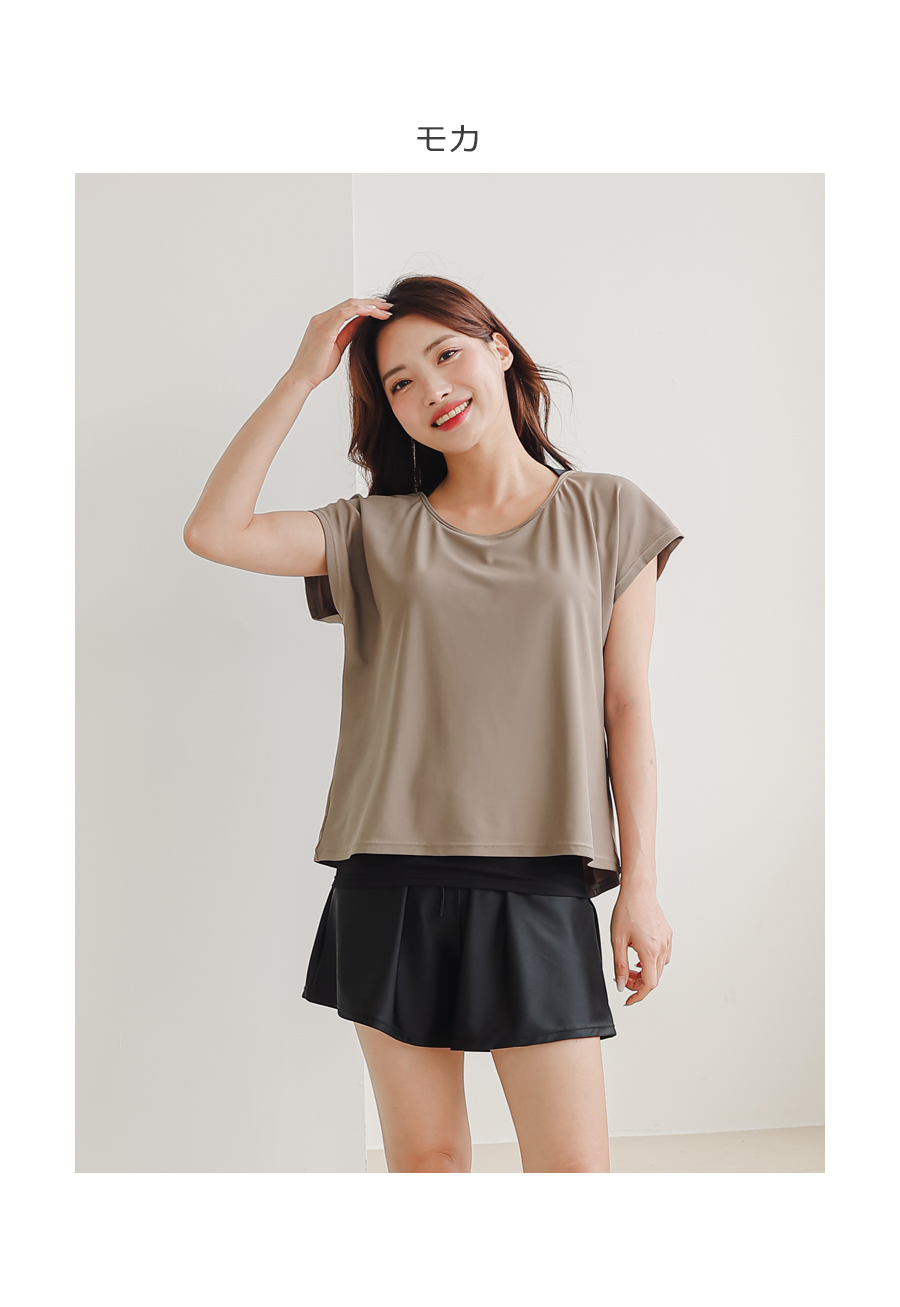 インナータンキニ付き無地袖なしTシャツと インナーパンツ付きショットパンツの二点セット水着