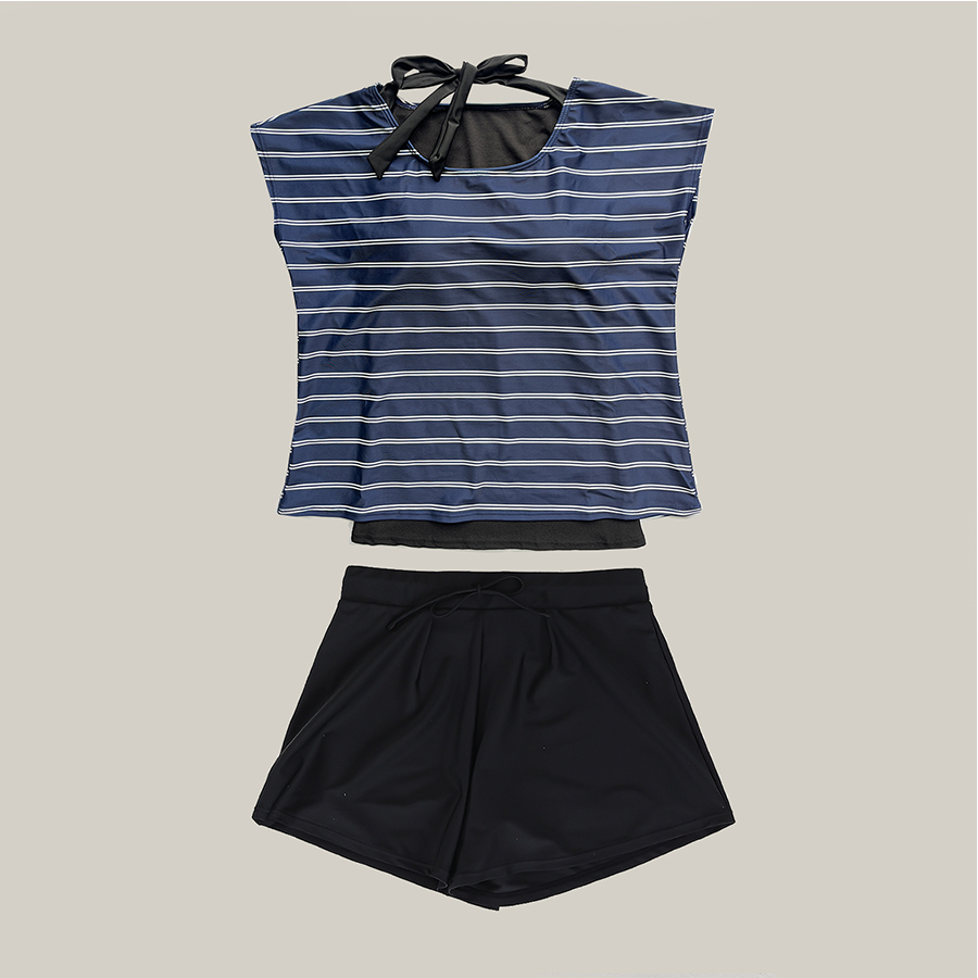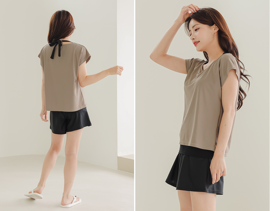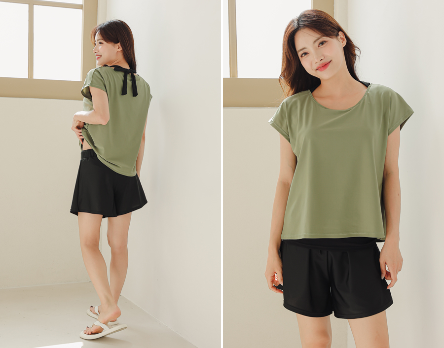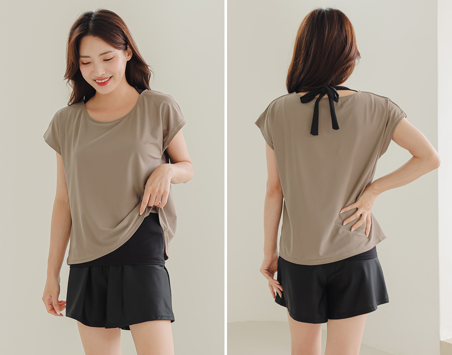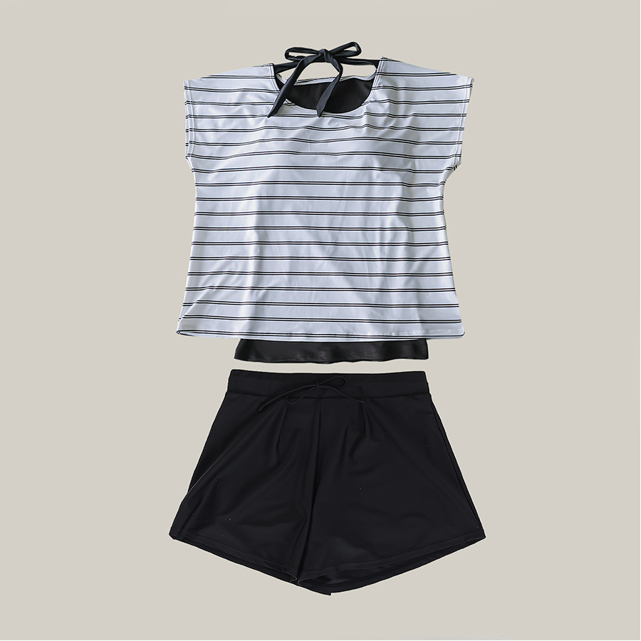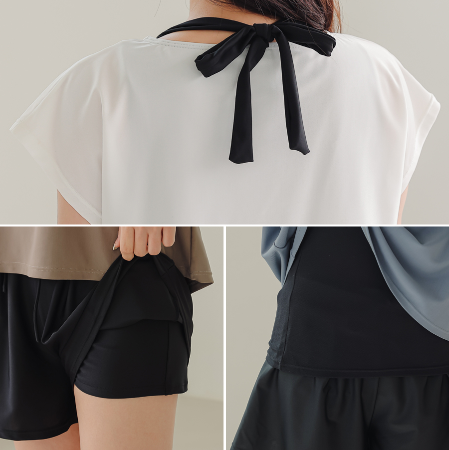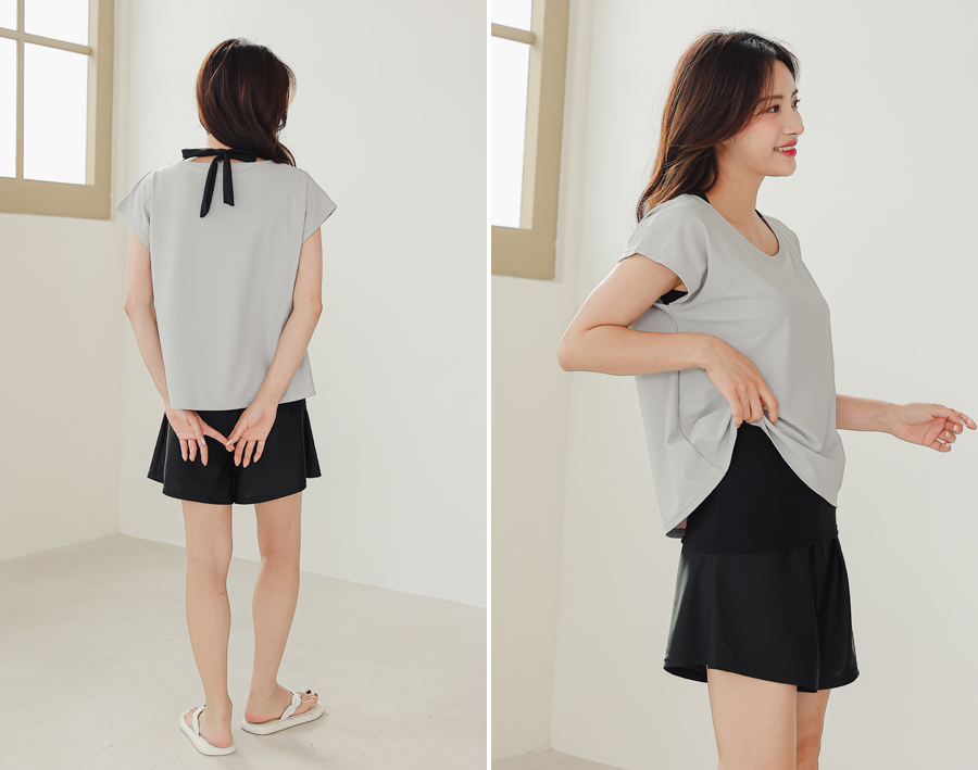 インナータンキニ付き無地袖なしTシャツと インナーパンツ付きショットパンツの二点セット水着