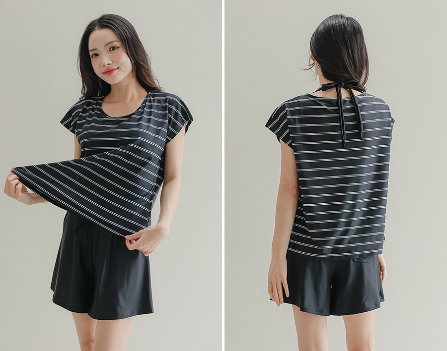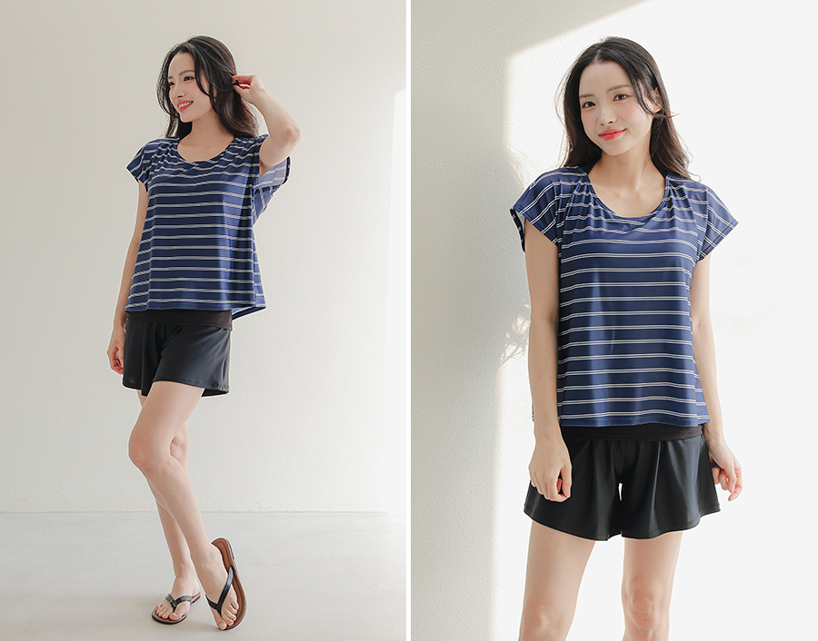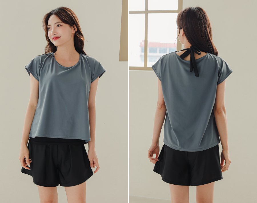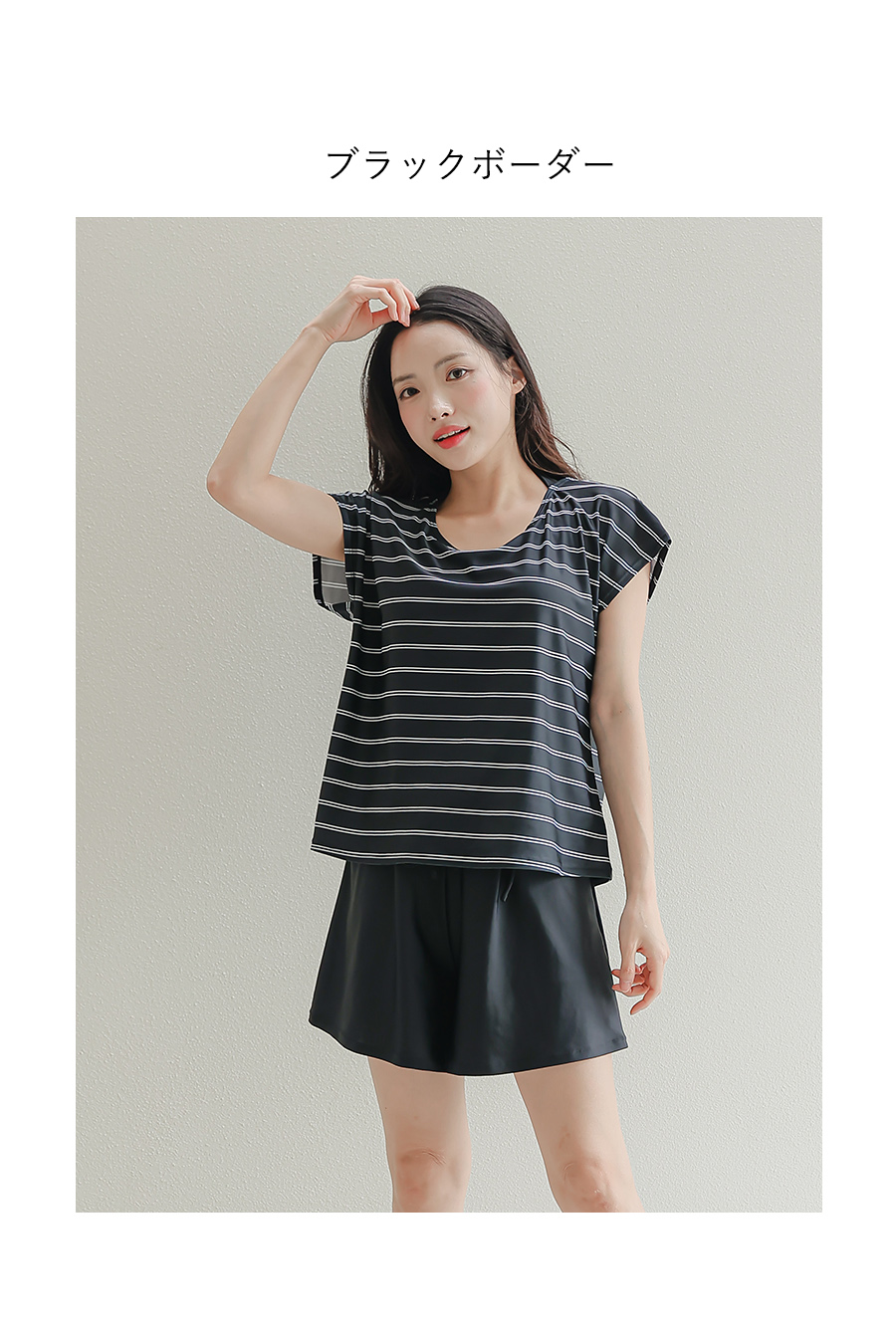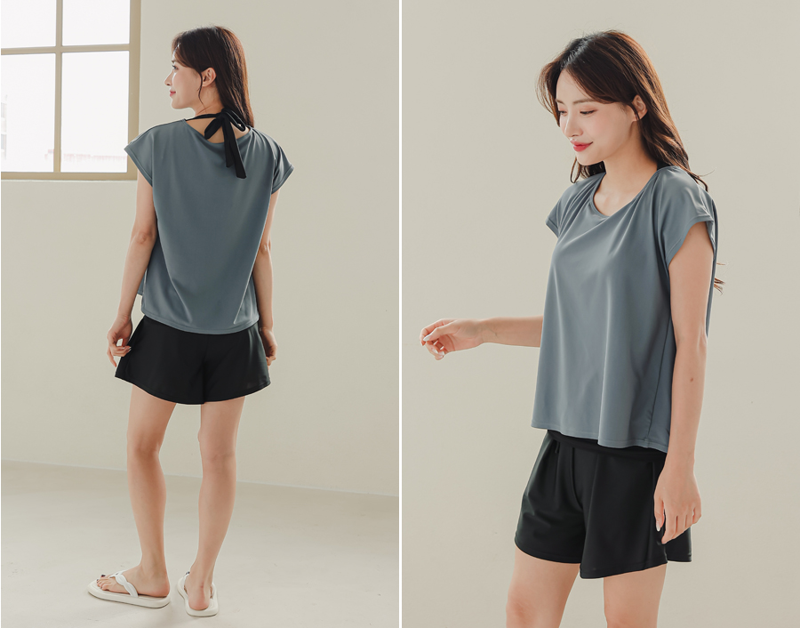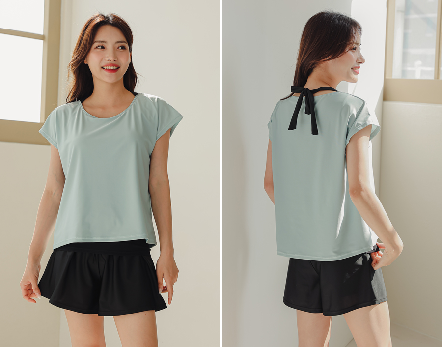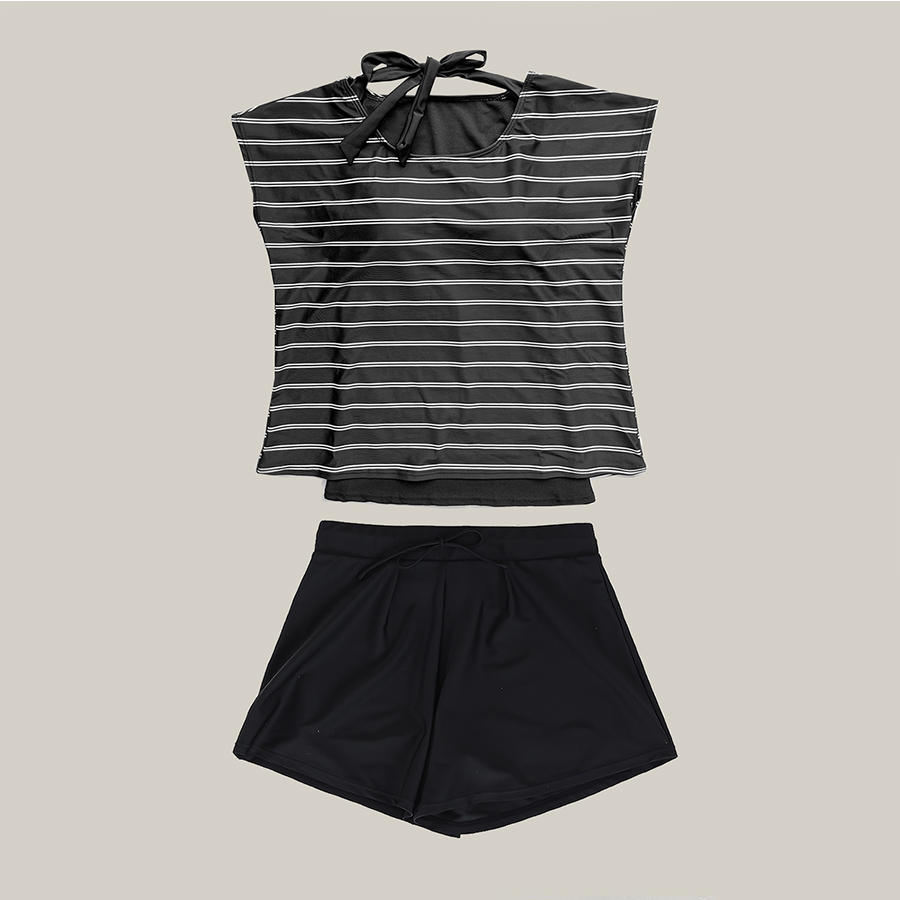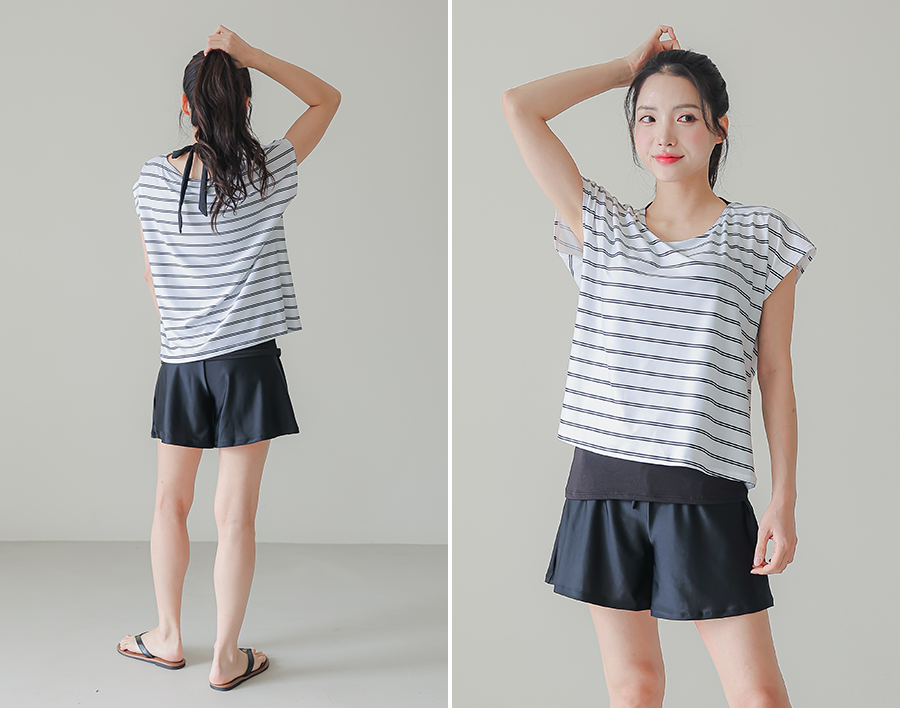 インナータンキニ付き無地袖なしTシャツと インナーパンツ付きショットパンツの二点セット水着