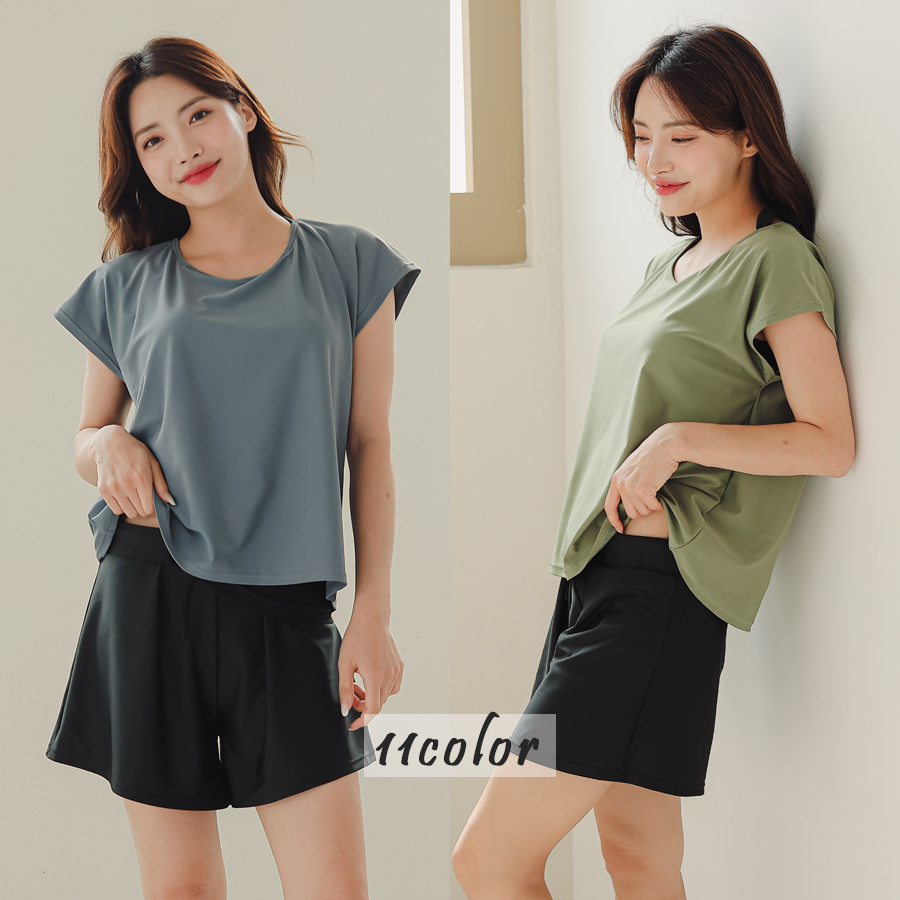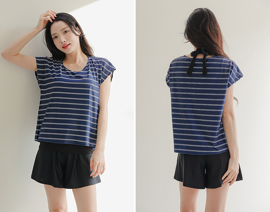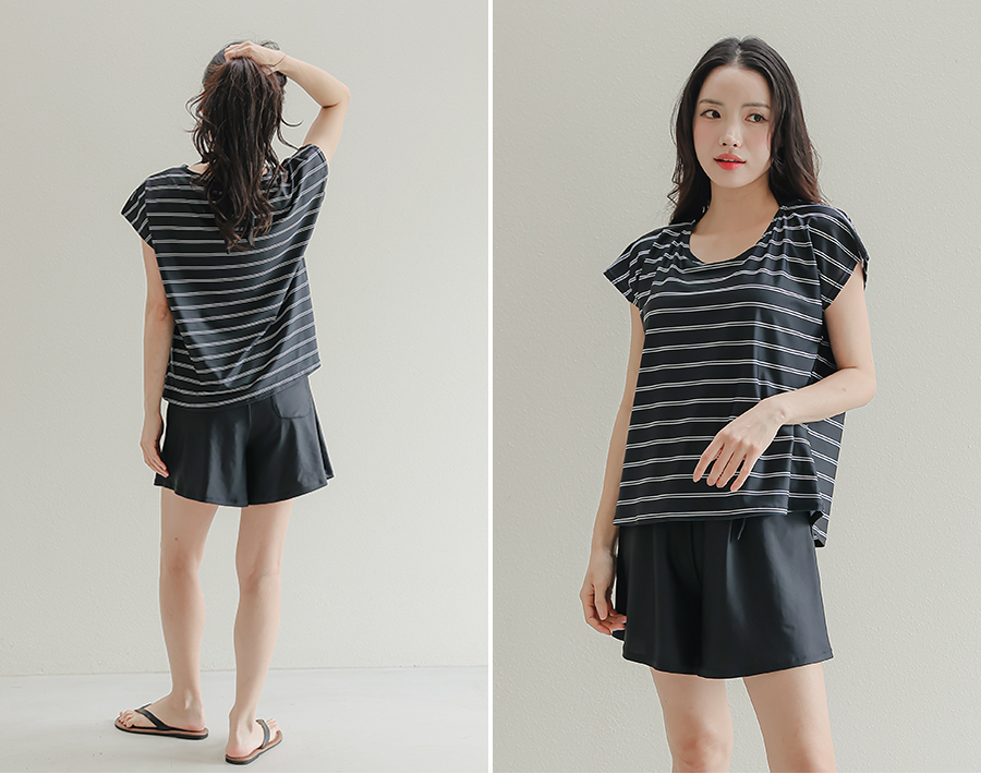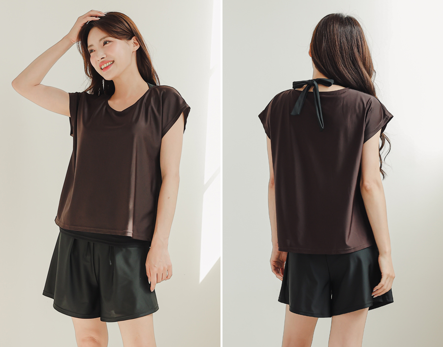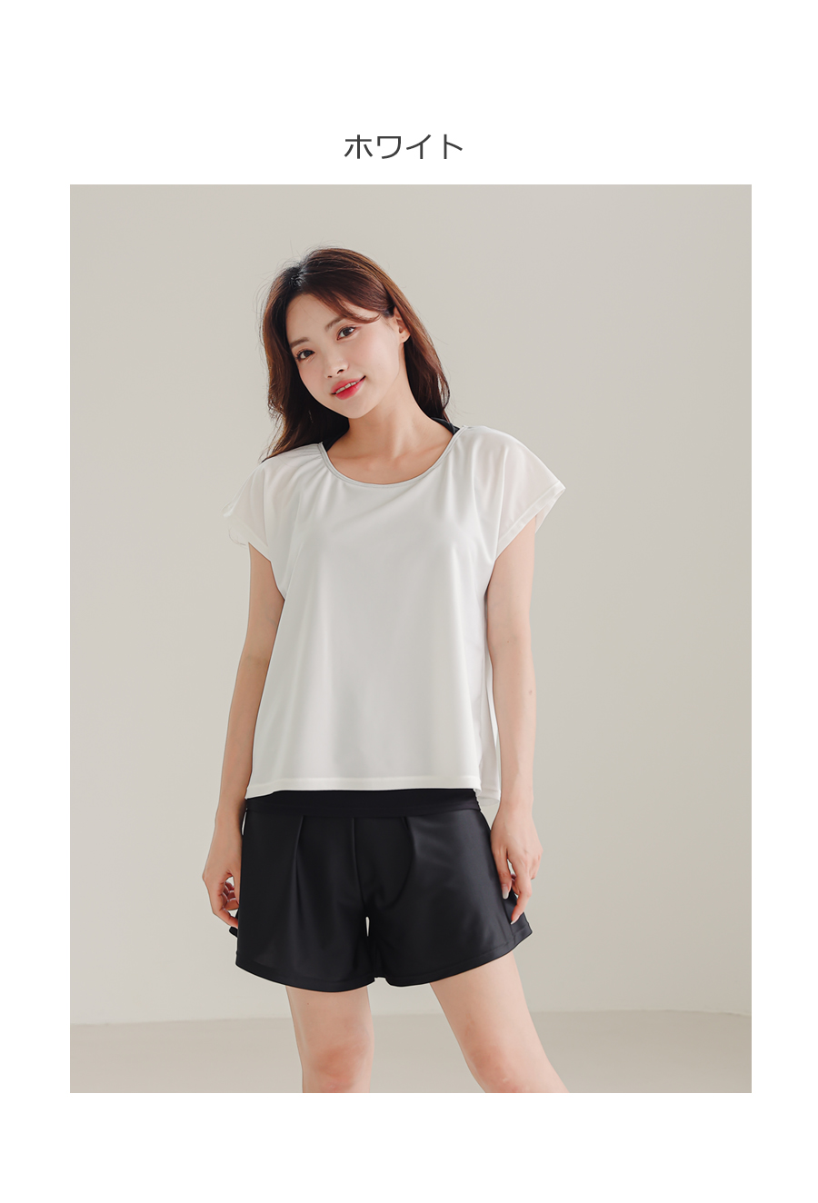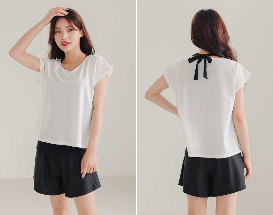 インナータンキニ付き無地袖なしTシャツと インナーパンツ付きショットパンツの二点セット水着