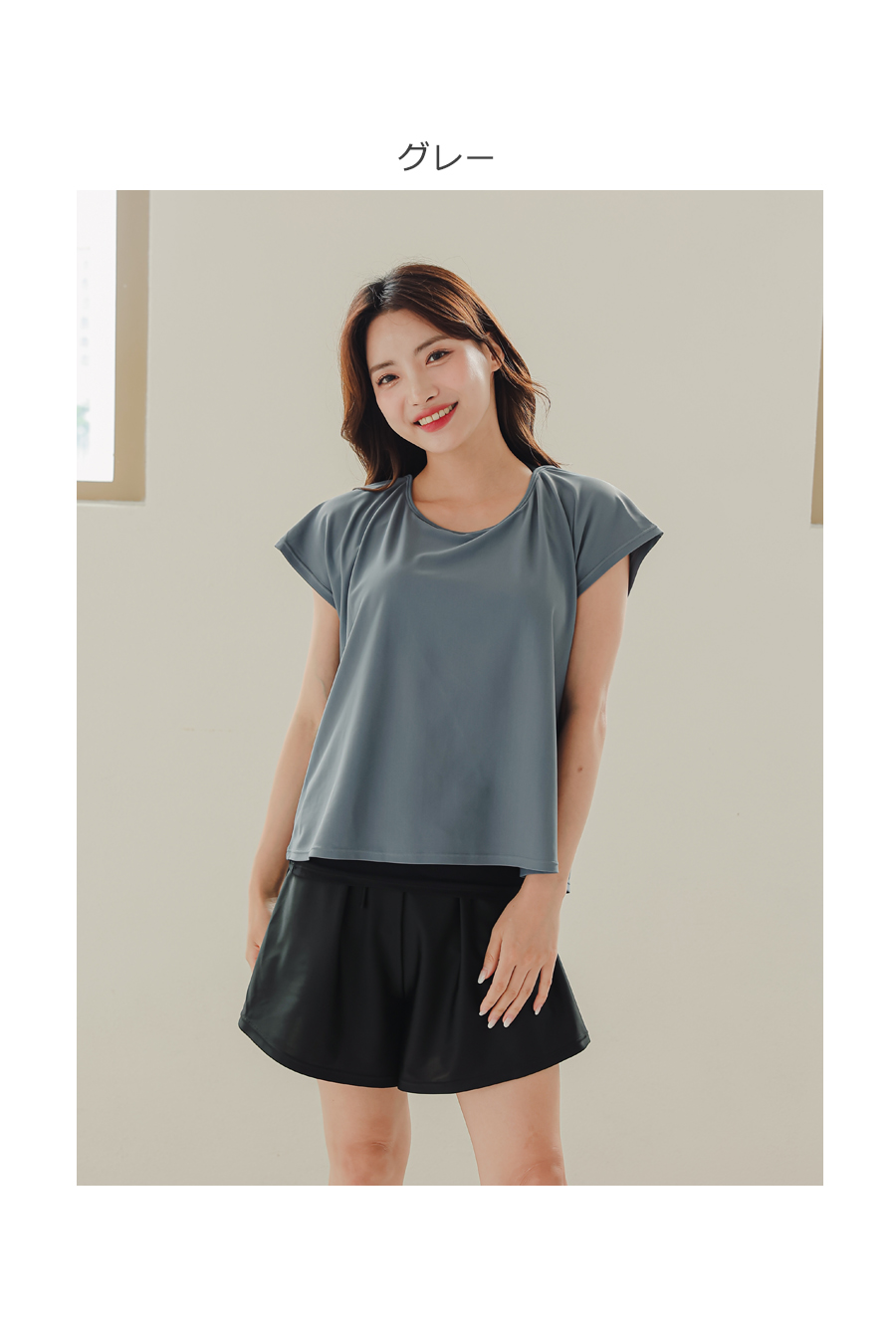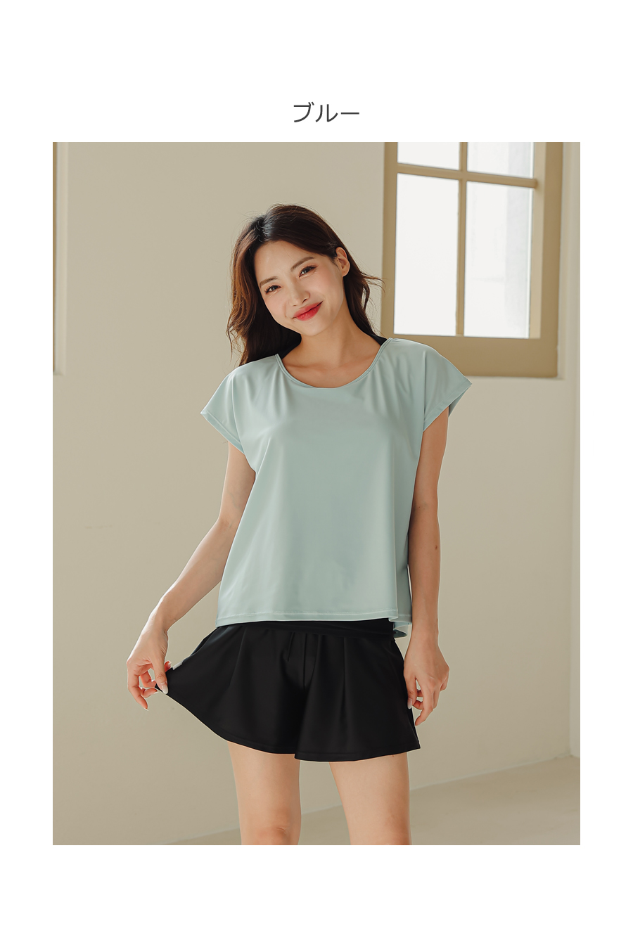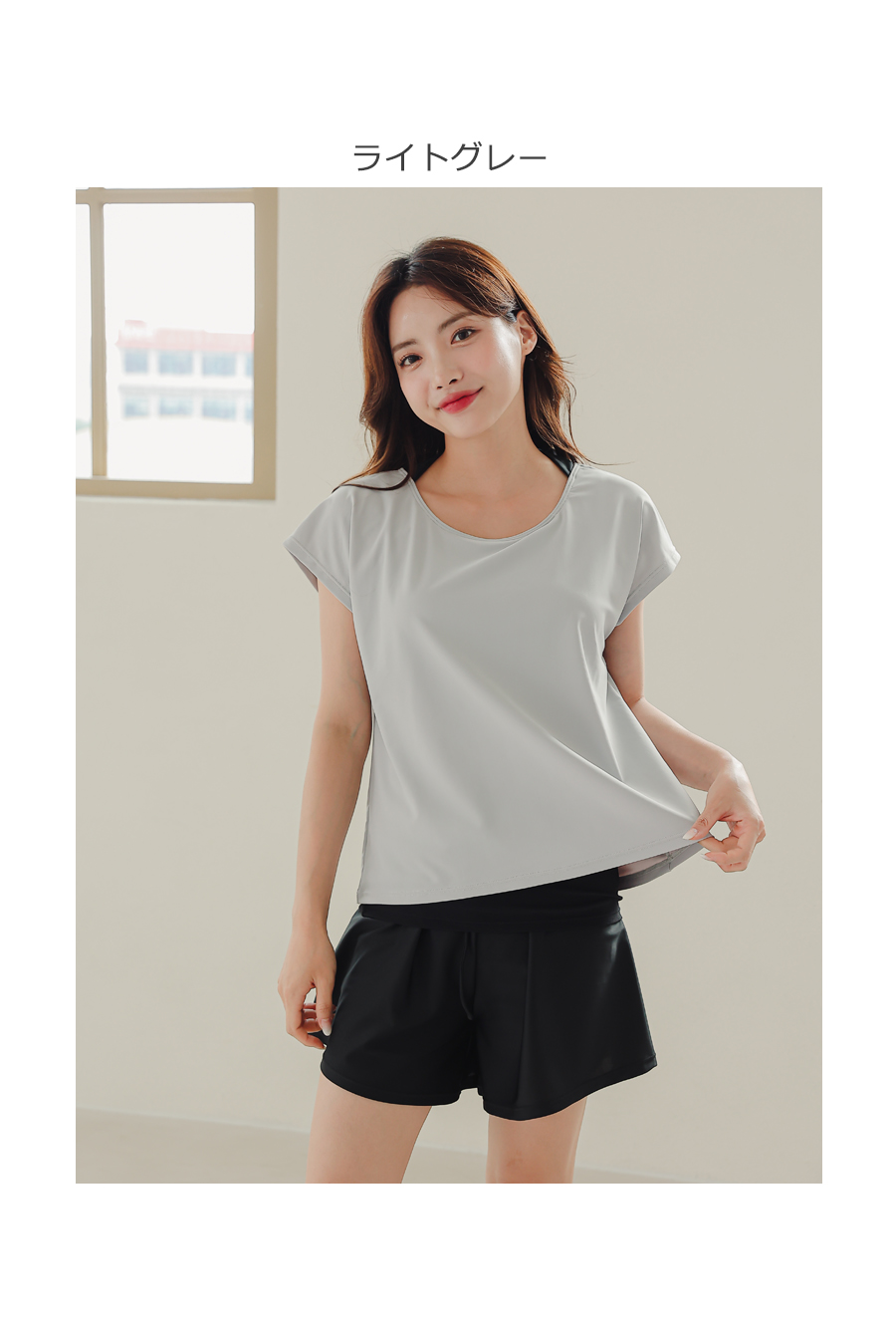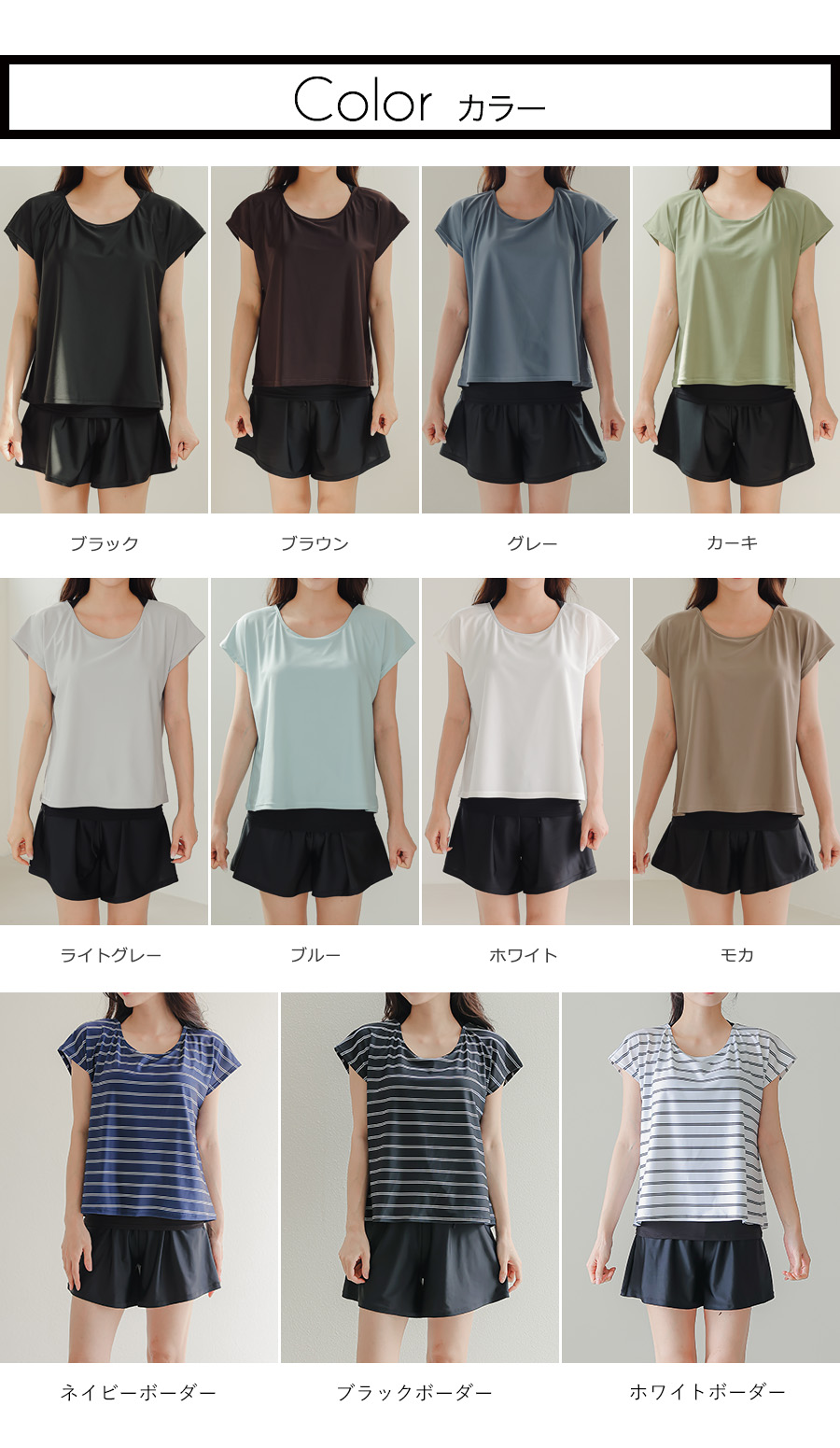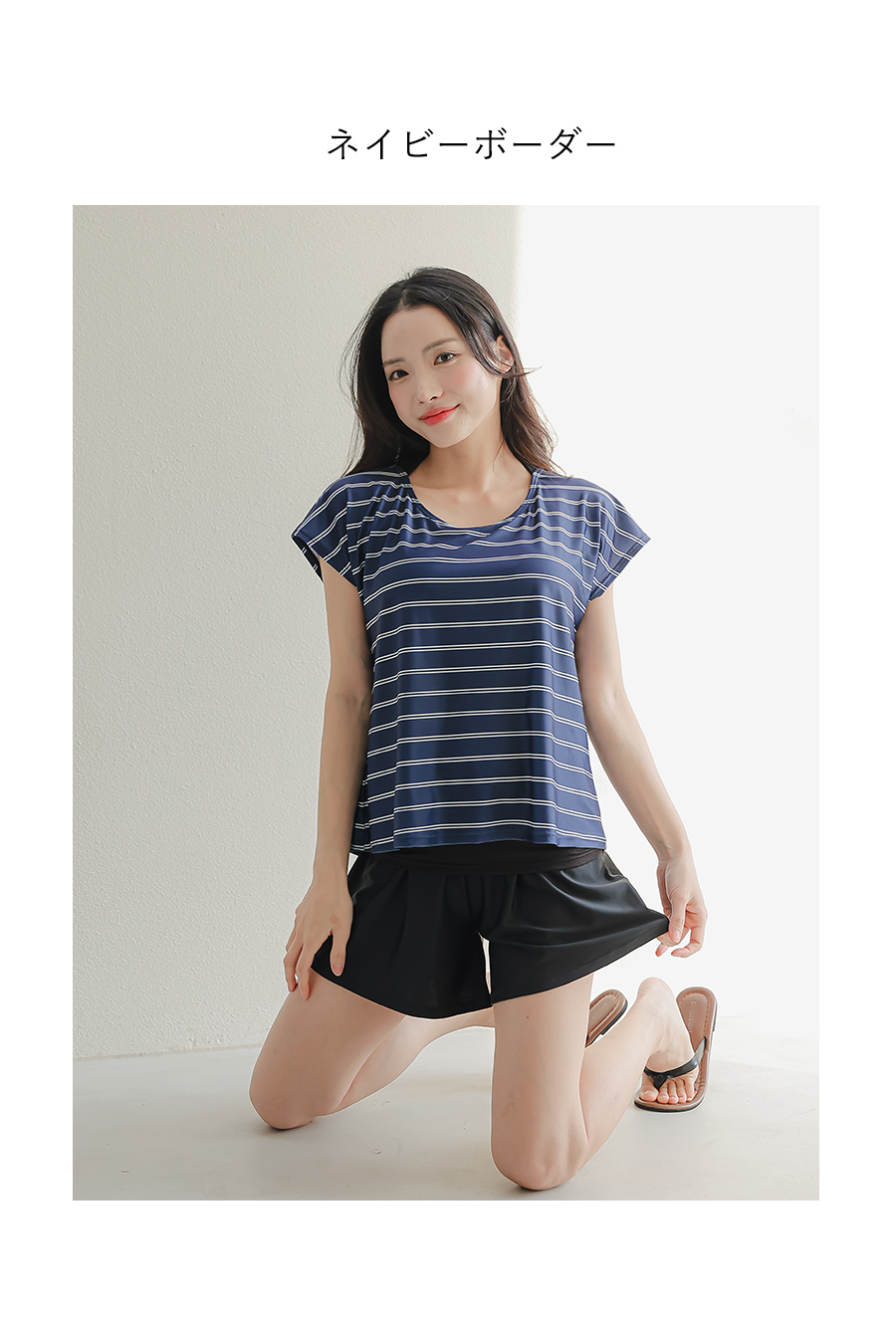 インナータンキニ付き無地袖なしTシャツと インナーパンツ付きショットパンツの二点セット水着