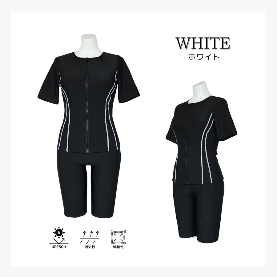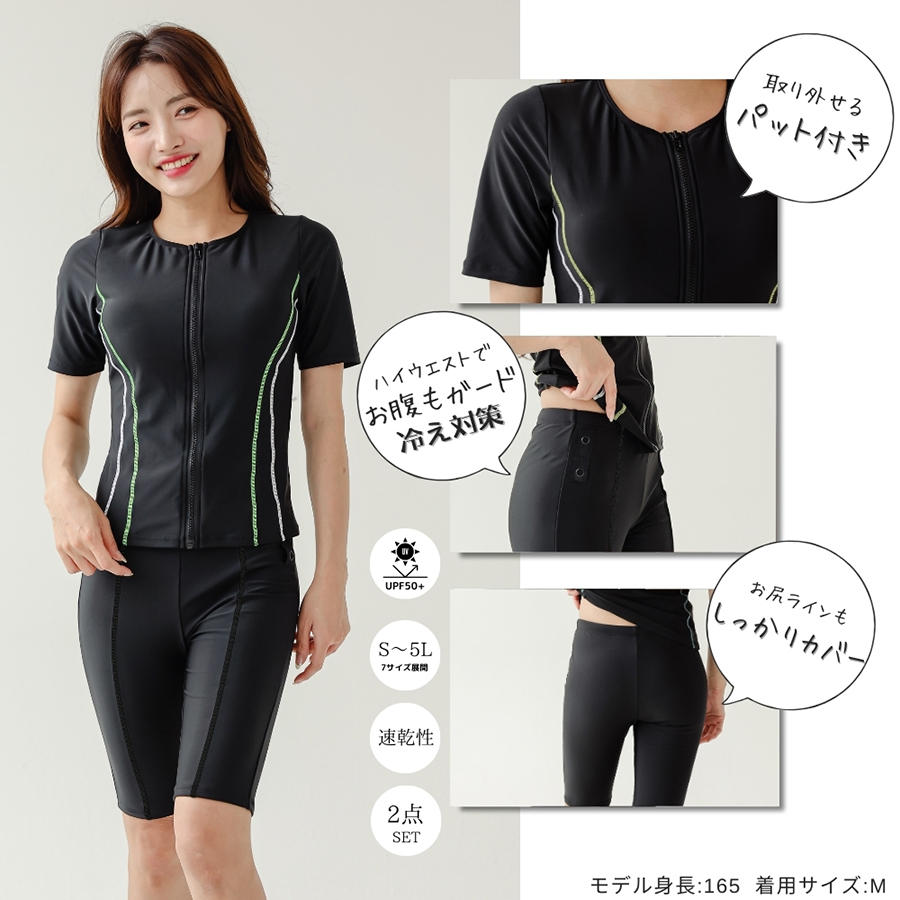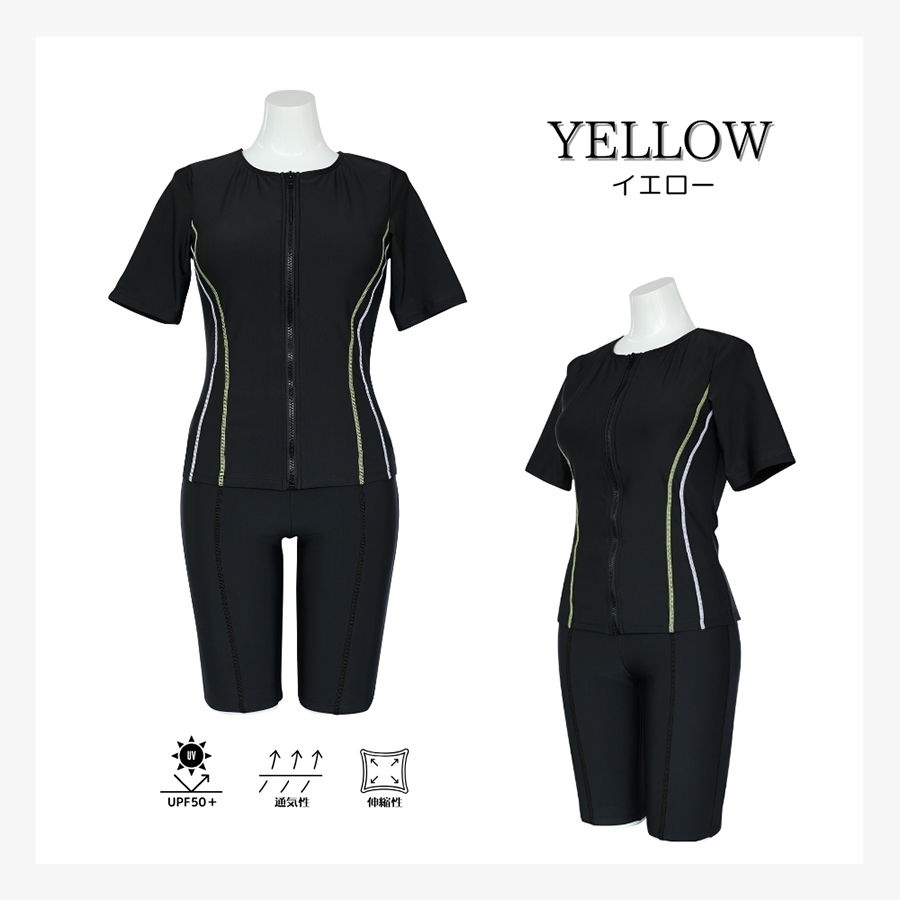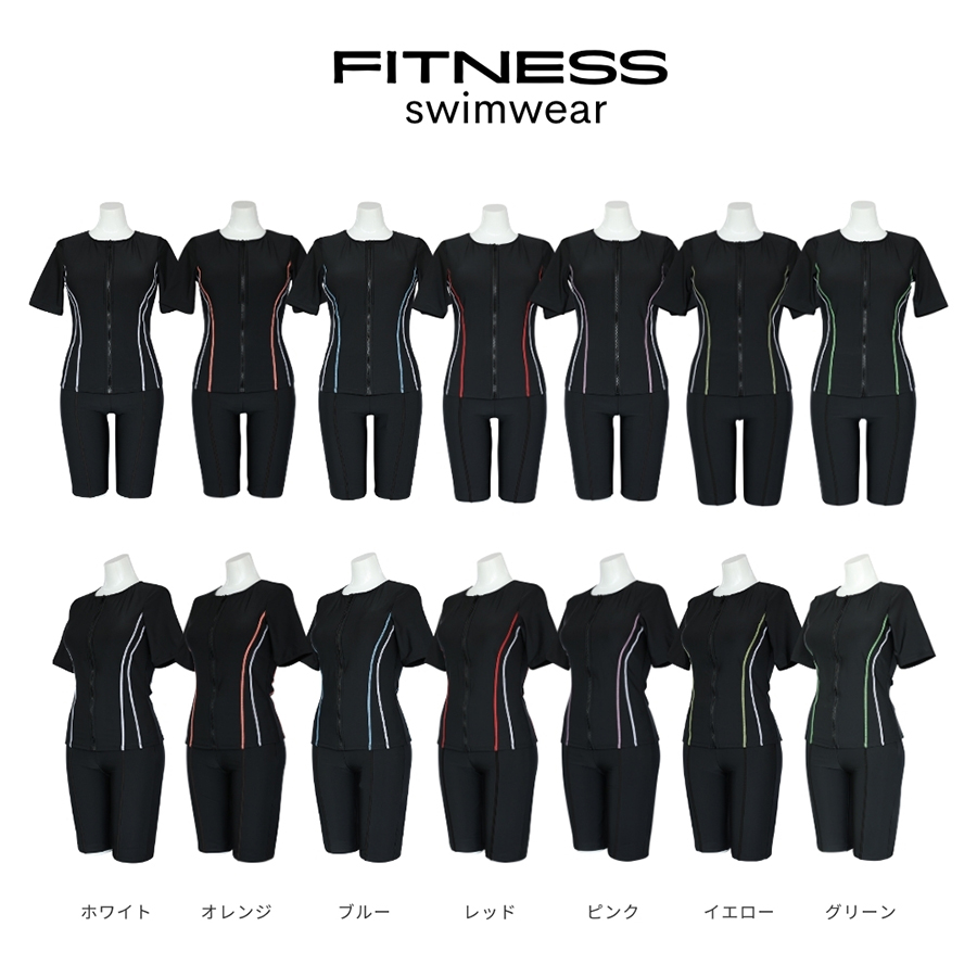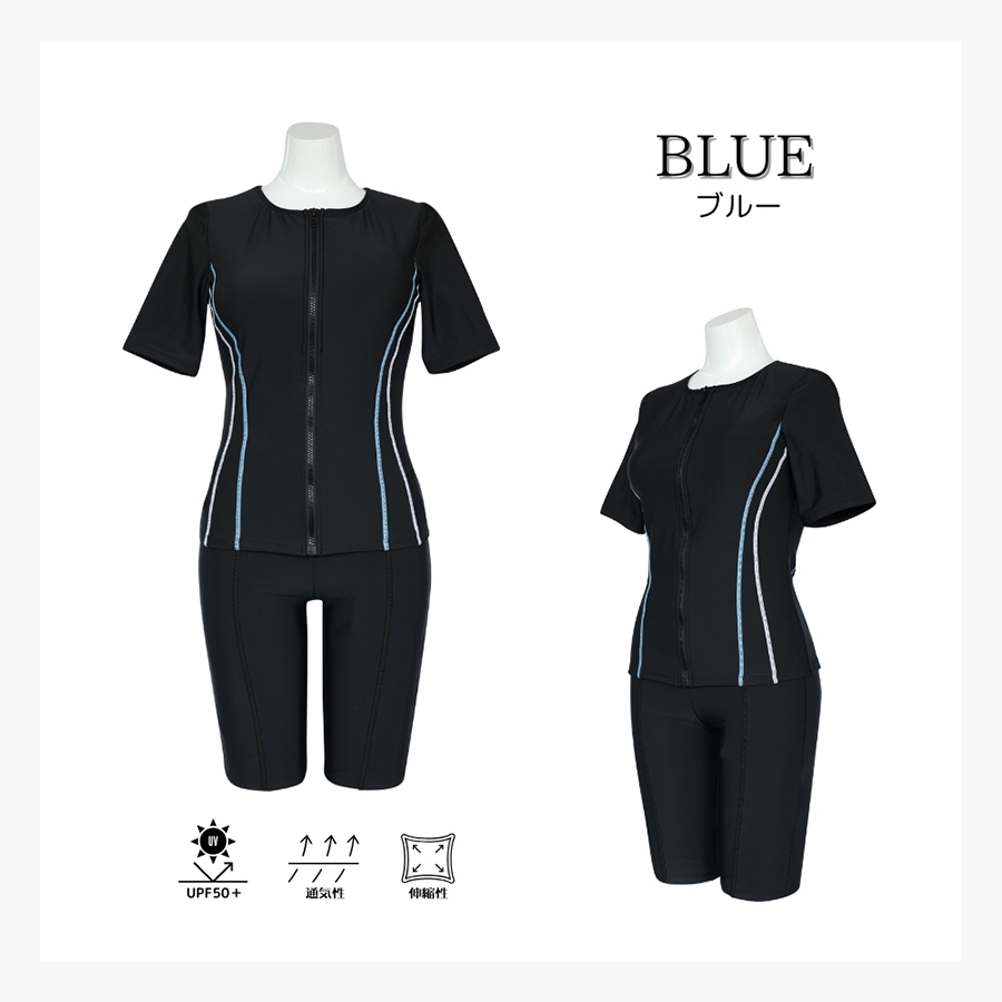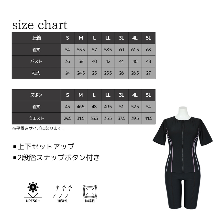 競泳練習用水着 めぐれ防止ボタン着き フィットネス 水着セット キャップ付き レディース セパレート 半袖 上下セット 大きいサイズ 4L(17L) 5L(19L) 体型カバー [FTS24-03(AK1058)]