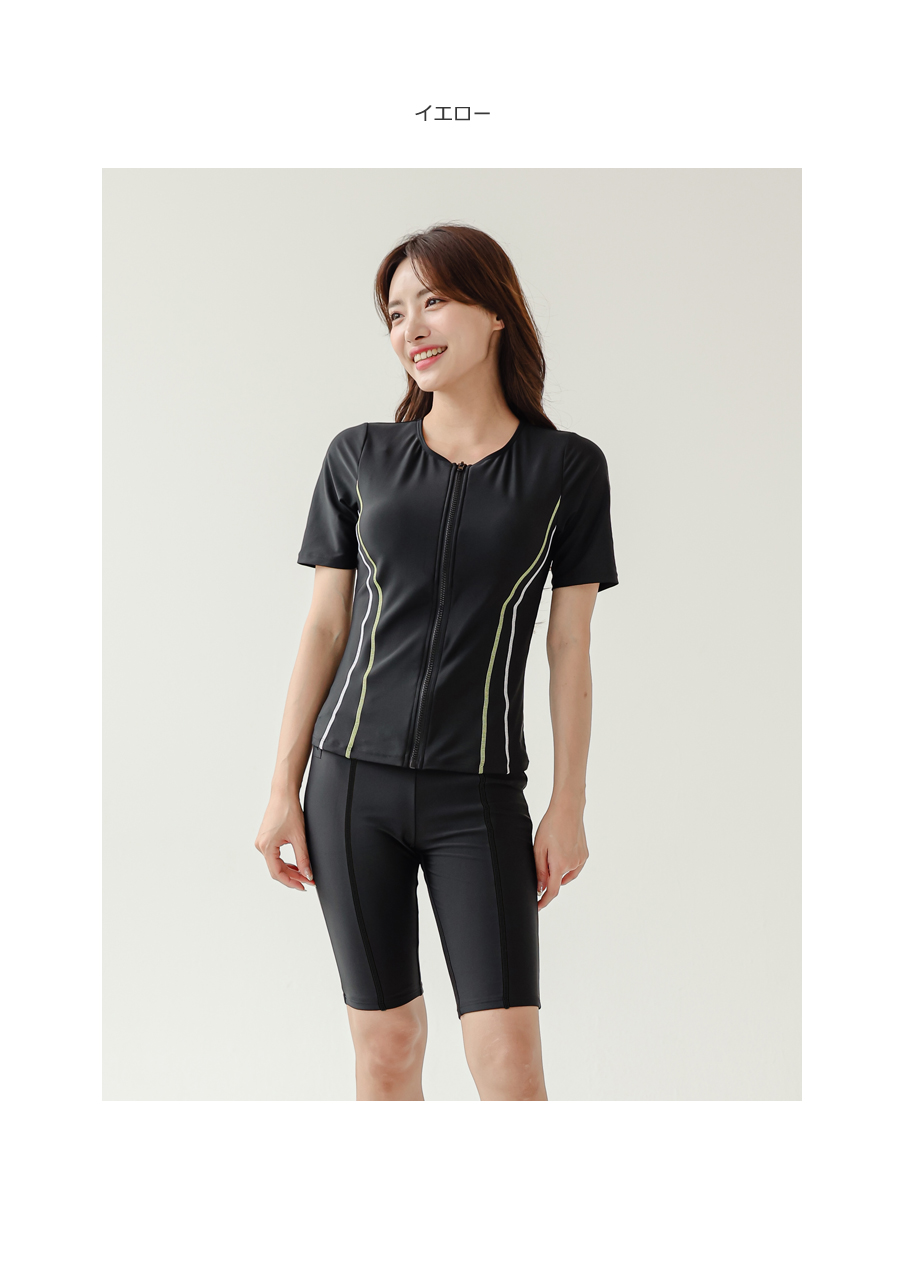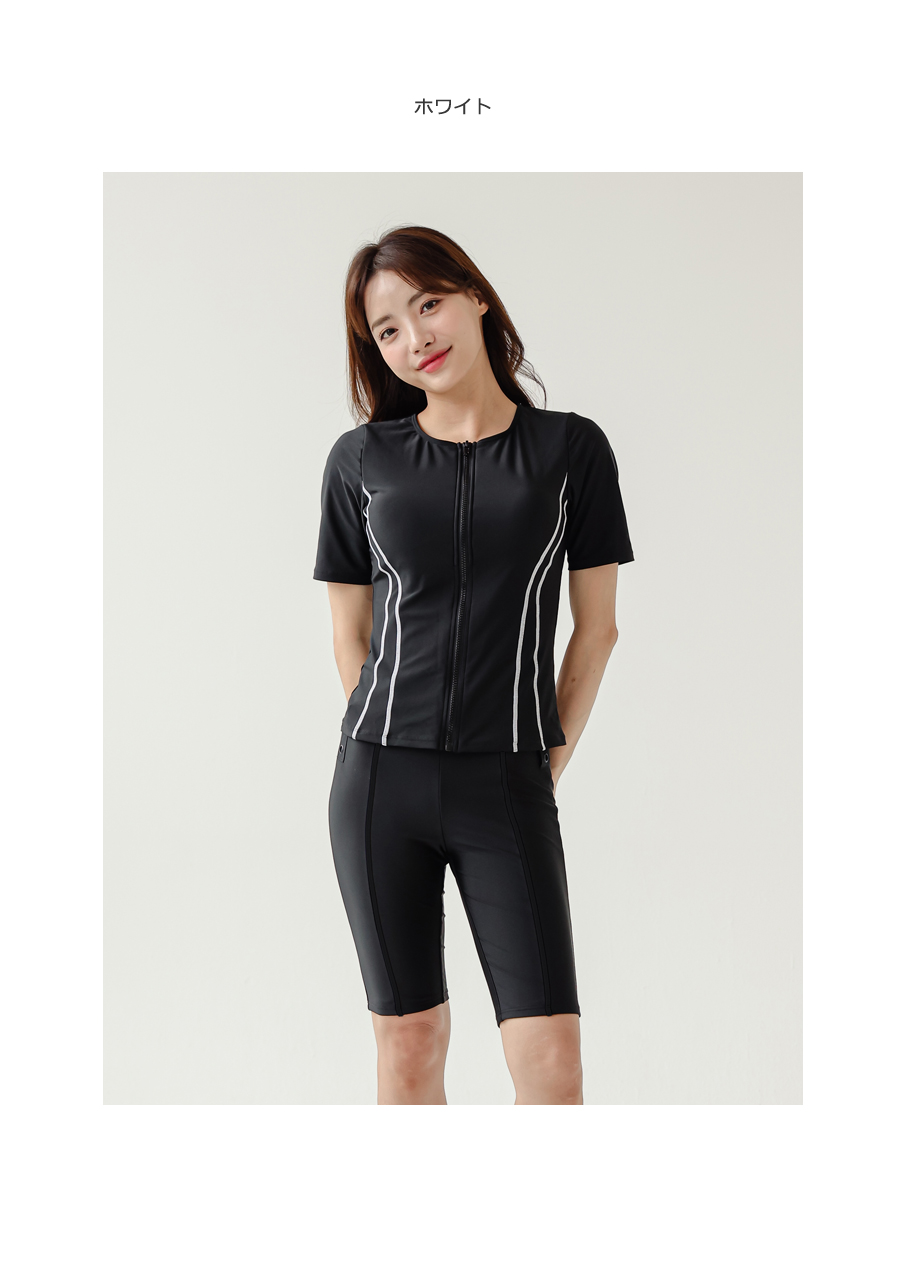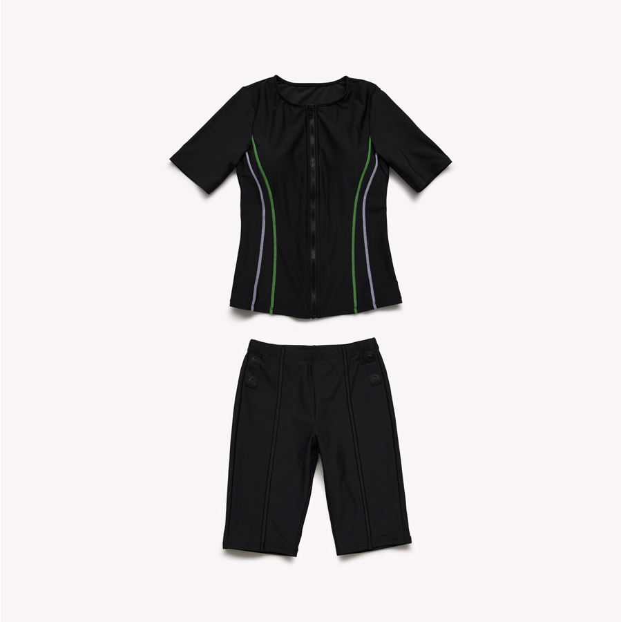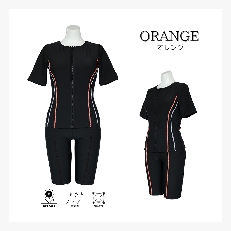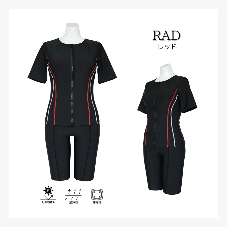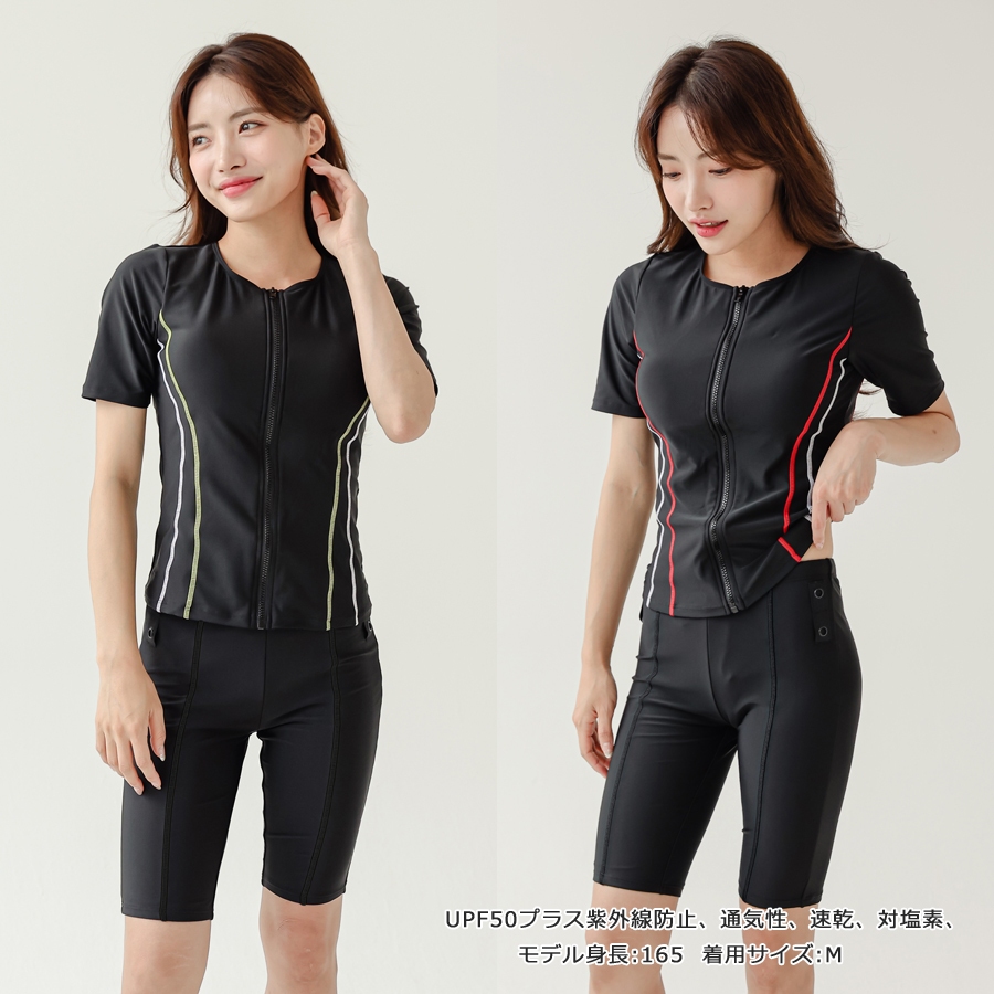競泳練習用水着 めぐれ防止ボタン着き フィットネス 水着セット キャップ付き レディース セパレート 半袖 上下セット 大きいサイズ 4L(17L) 5L(19L) 体型カバー [FTS24-03(AK1058)]