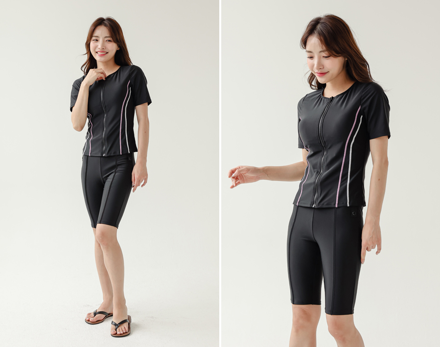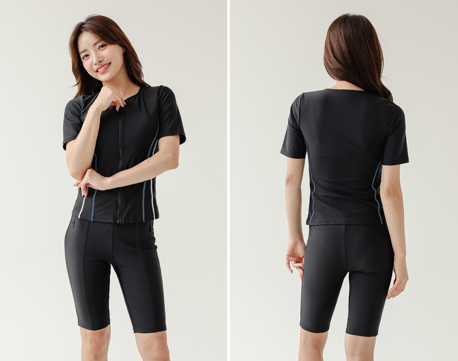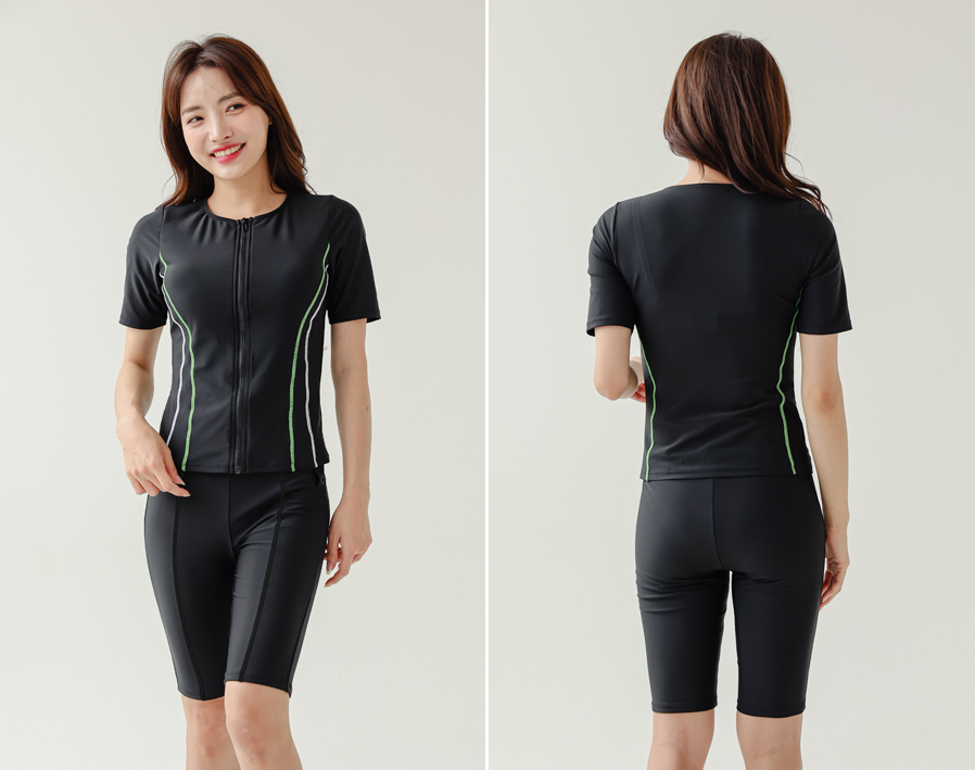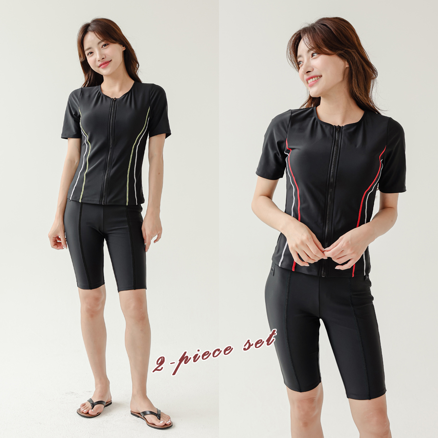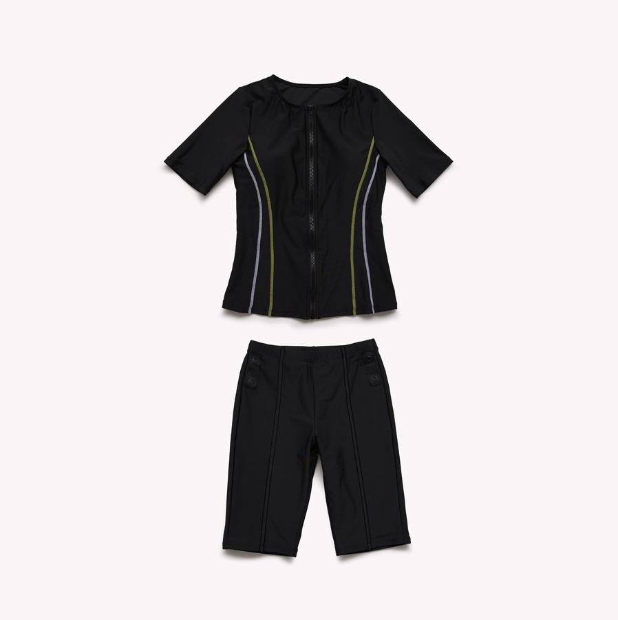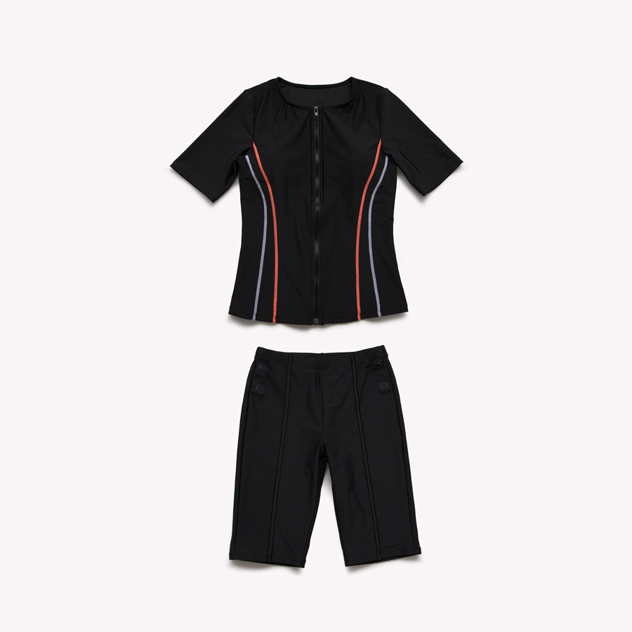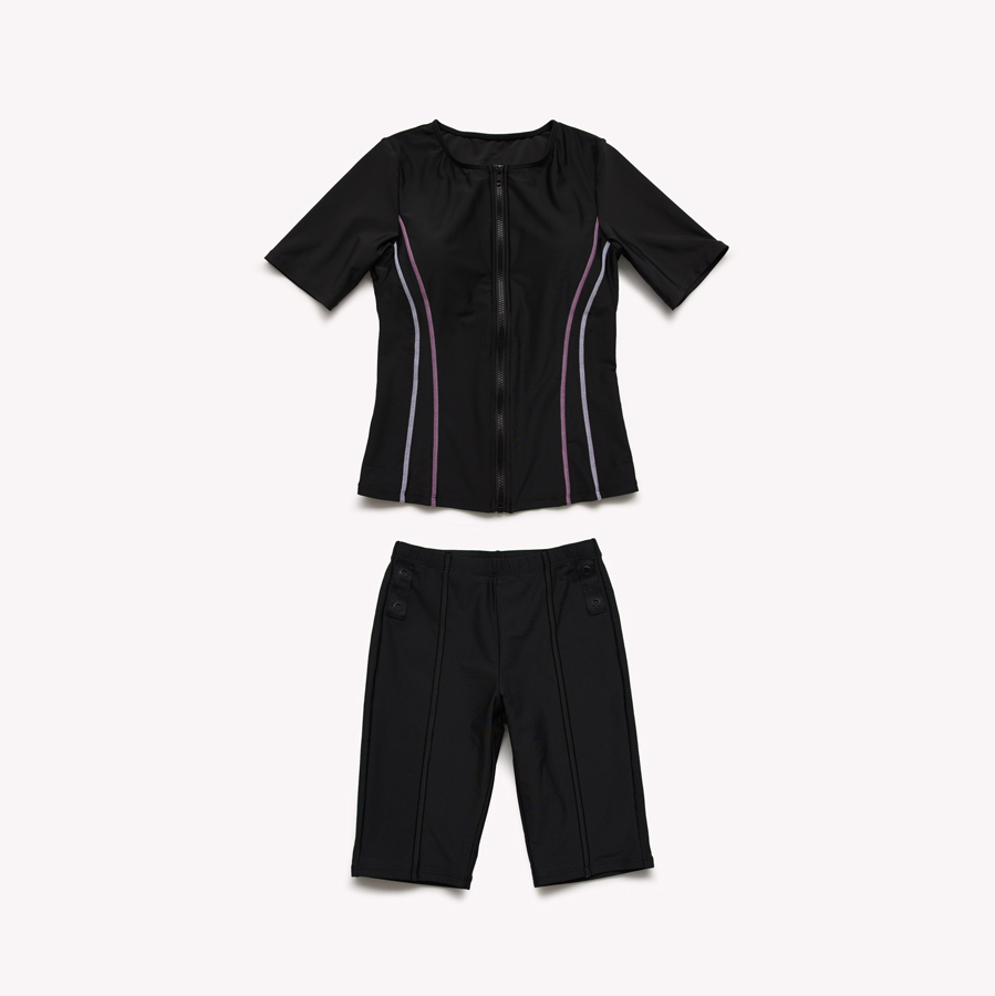 競泳練習用水着 めぐれ防止ボタン着き フィットネス 水着セット キャップ付き レディース セパレート 半袖 上下セット 大きいサイズ 4L(17L) 5L(19L) 体型カバー [FTS24-03(AK1058)]