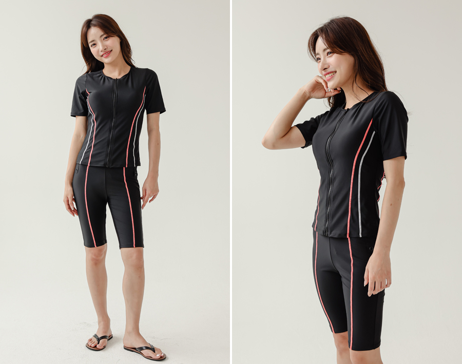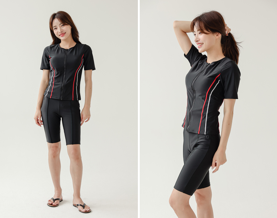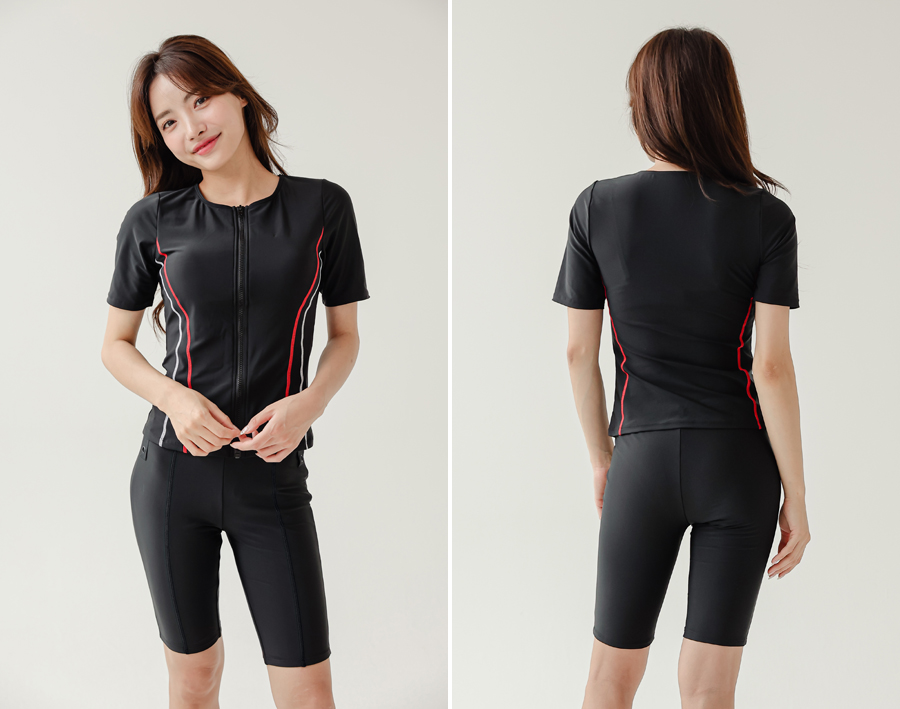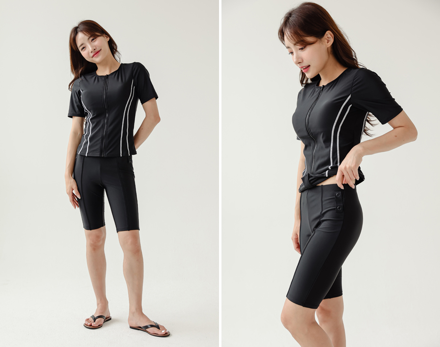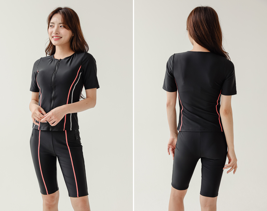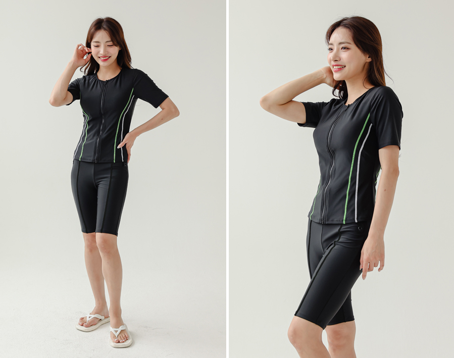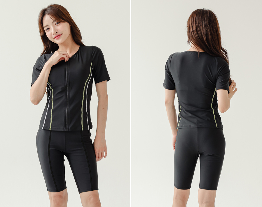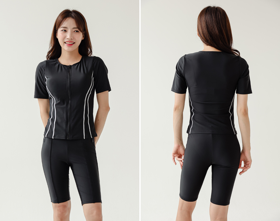 競泳練習用水着 めぐれ防止ボタン着き フィットネス 水着セット キャップ付き レディース セパレート 半袖 上下セット 大きいサイズ 4L(17L) 5L(19L) 体型カバー [FTS24-03(AK1058)]