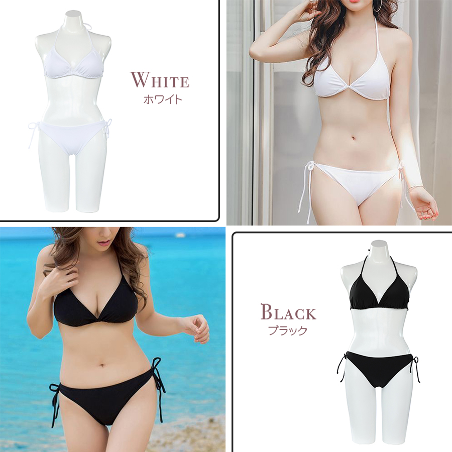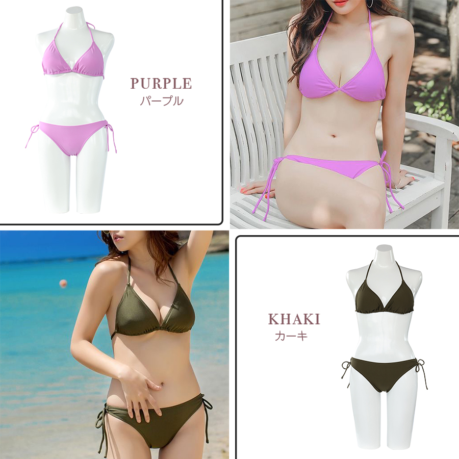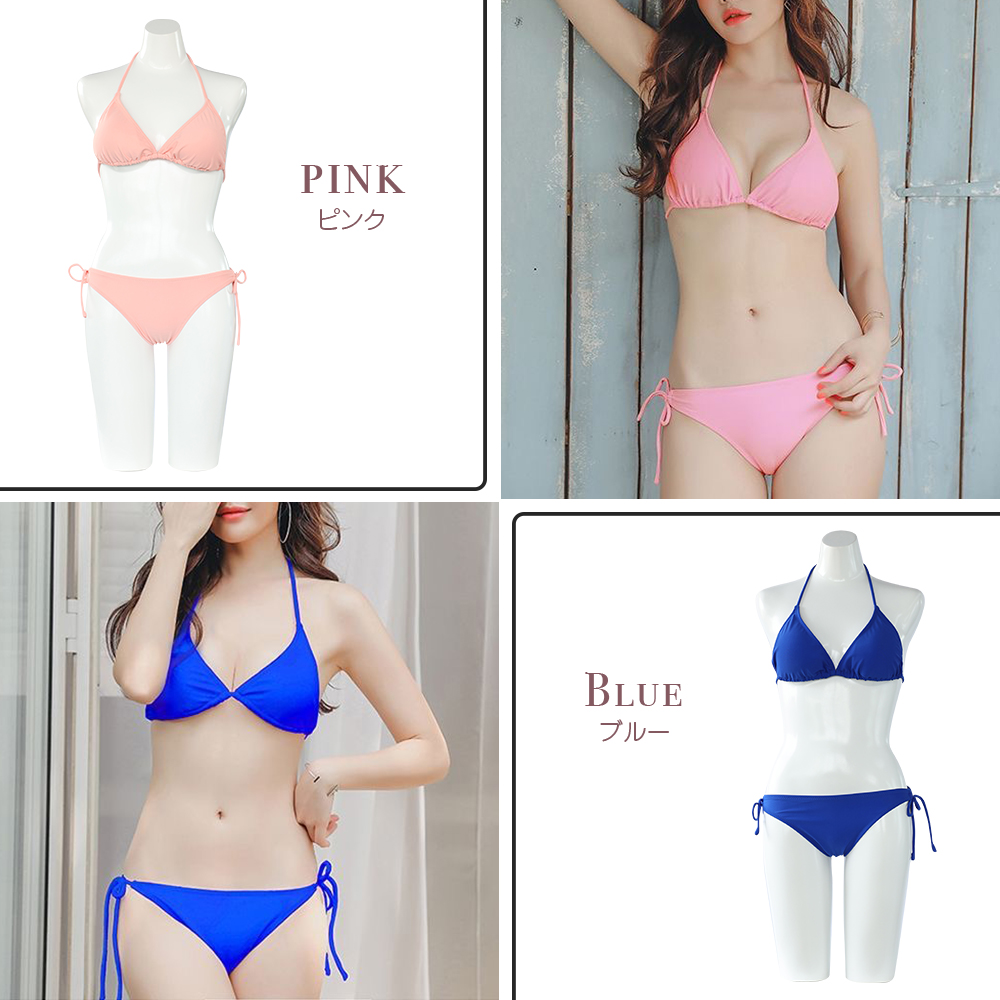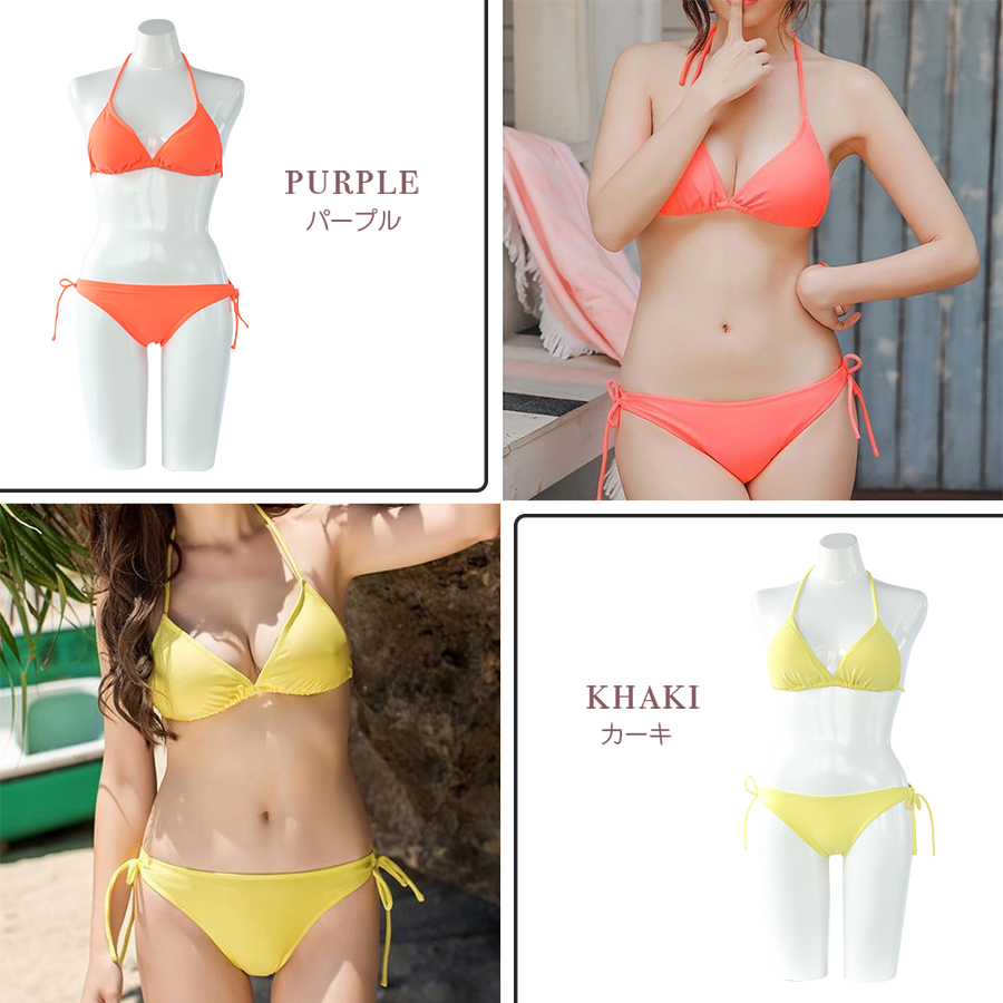 12カラーBIKINIビキニセット ホルターネック 水着 セクシー ビキニ 3サイズ S〜L 上下セット レディース カップ付き 紐ビキニ 定番ビキニ シンプル水着 [SW1758]