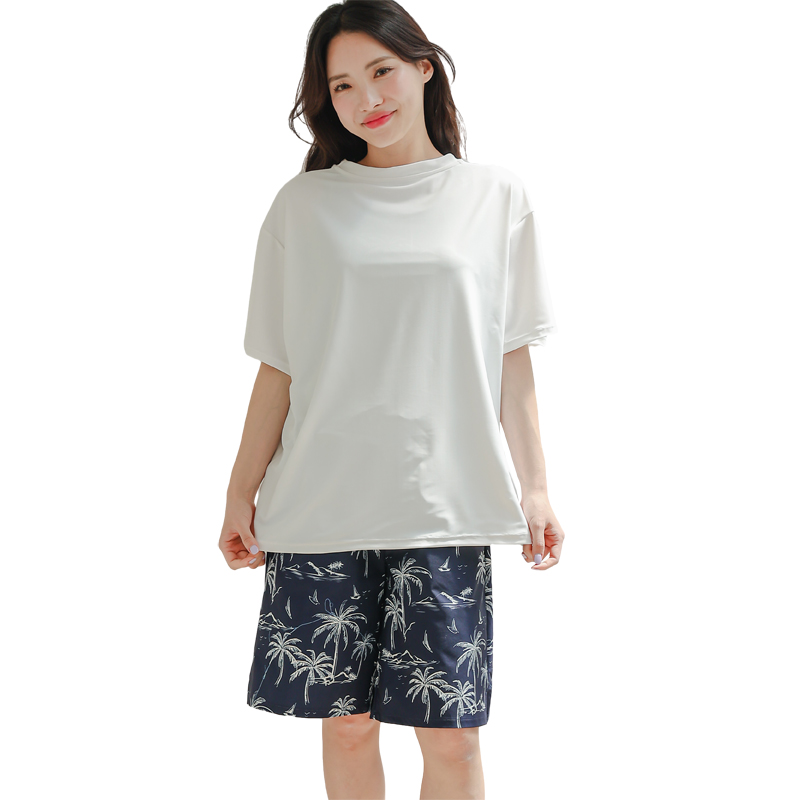 水着4点 水着体系カバーセット 半袖ラッシュガード 膝までロング布帛ショットパンツ タンキニトップス 四角ショーツ 水着4点セット ママ水着 スイムウェア カバーアップウェット水着 セット [ZYB2501]