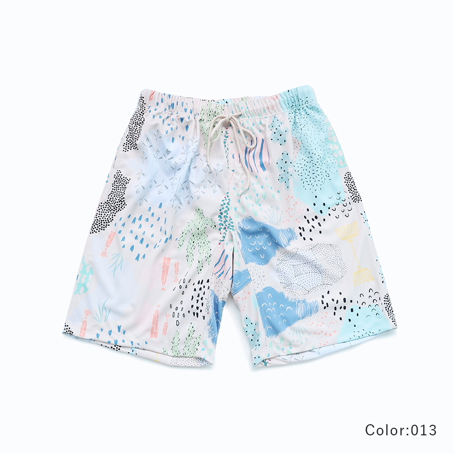 膝まで布帛メンズパンツ 水が溜まらない メッシュインナー付き 布帛速乾素材 ポケット付き ウェスト調整紐 膝まで長さ 男用水着パンツ ランニング 無地シンプル プリント柄 [SLV32130]