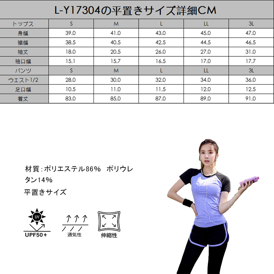 ヨガ2点セット ヨガウェア 上下セット レディース 体型カバー 半袖 Tシャツ ハイウエスト ヨガパンツ レギンス ピラティス トレーニング ジム スポーツウェア 吸汗速乾 伸縮通気 [L-Y17304]