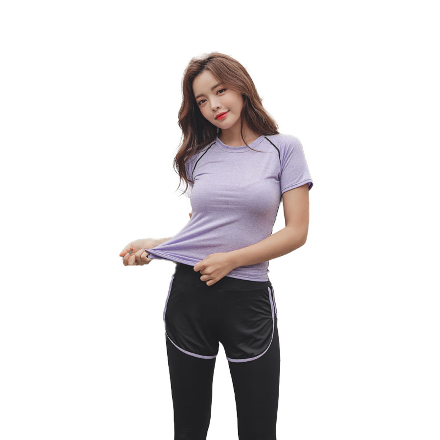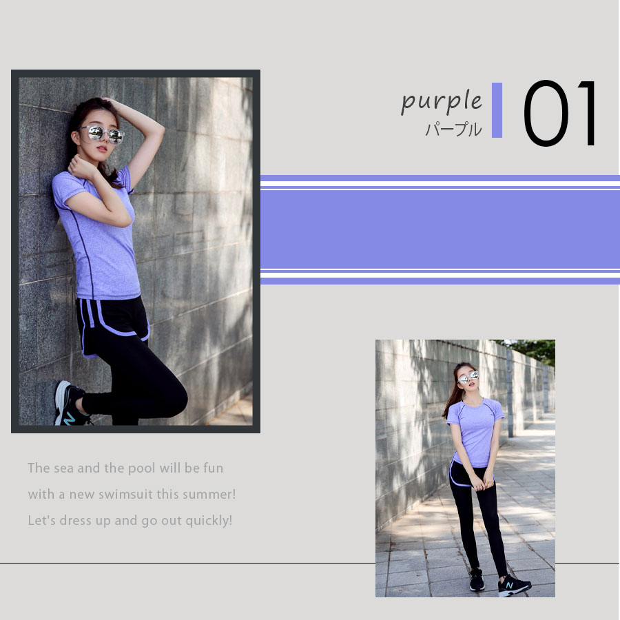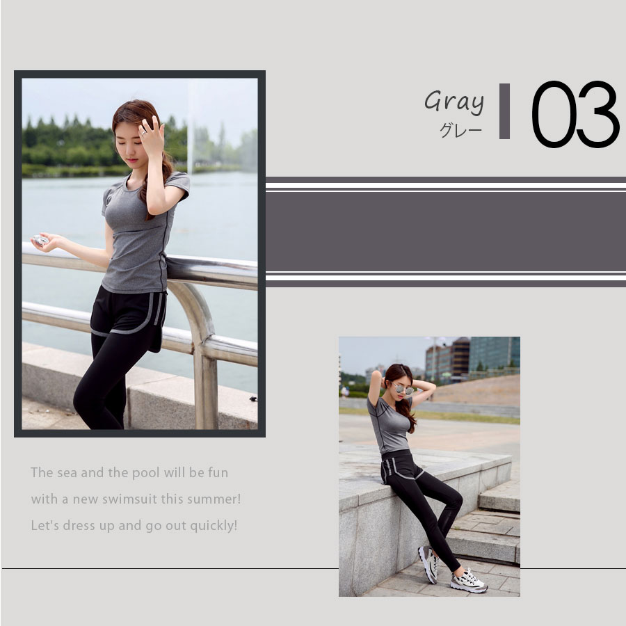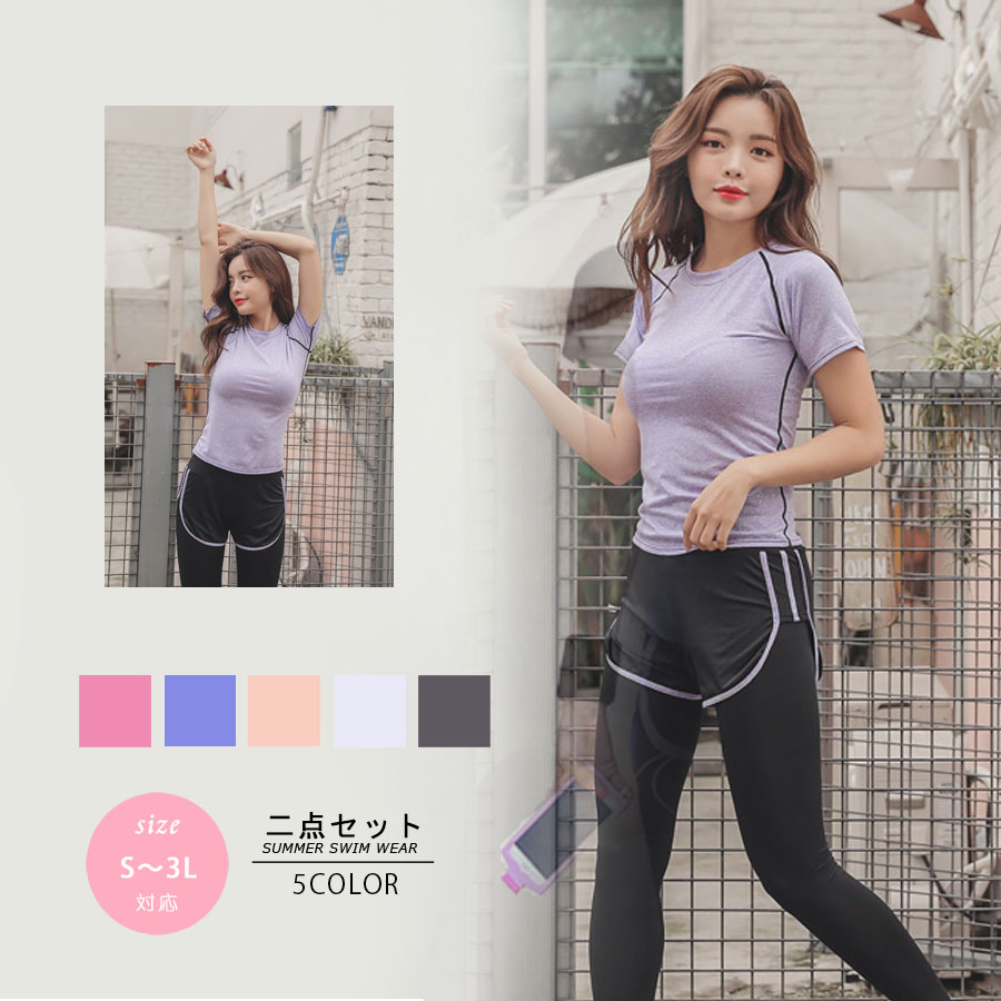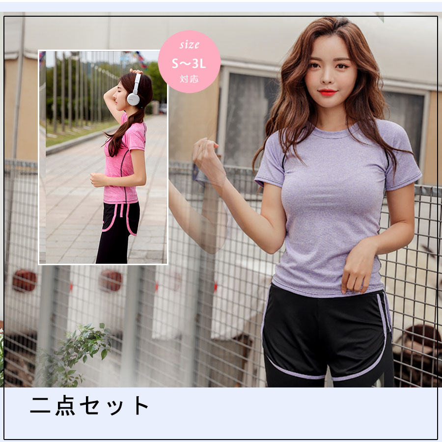 ヨガスポーツウェア セット ヨガ2点セット ヨガウェア 上下セット レディース 体型カバー 半袖 Tシャツ ハイウエスト ヨガパンツ レギンス ピラティス トレーニング ジム スポーツウェア 吸汗速乾 [L-Y17303-02]
