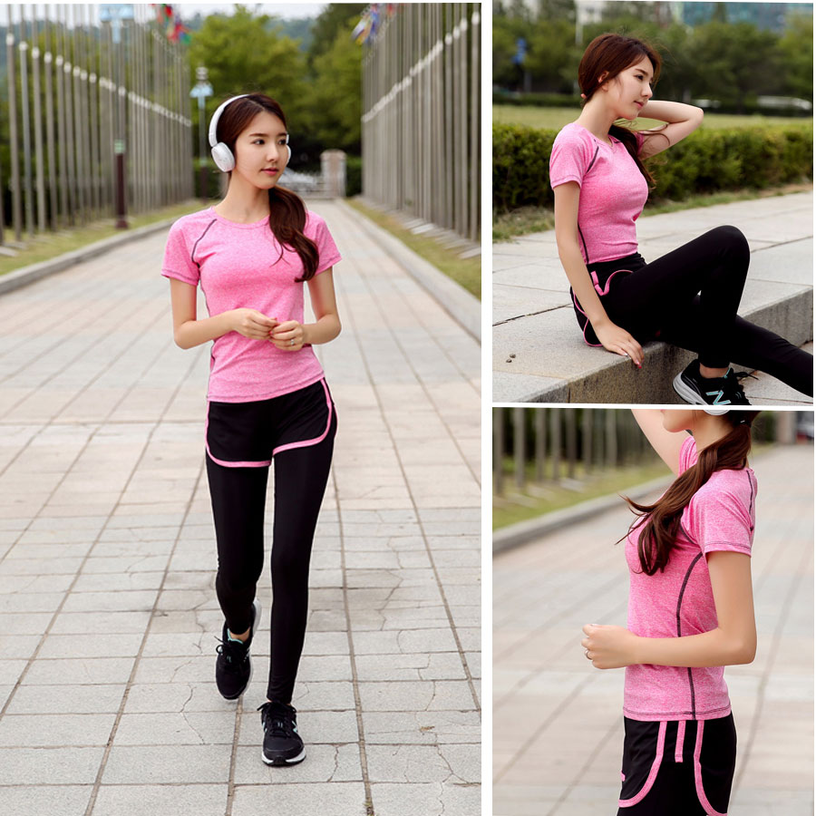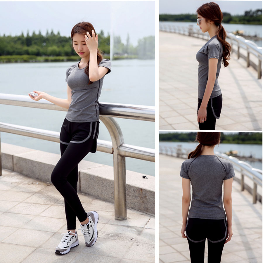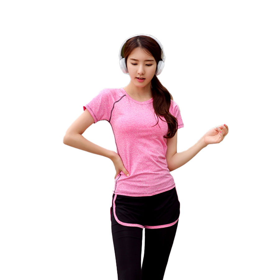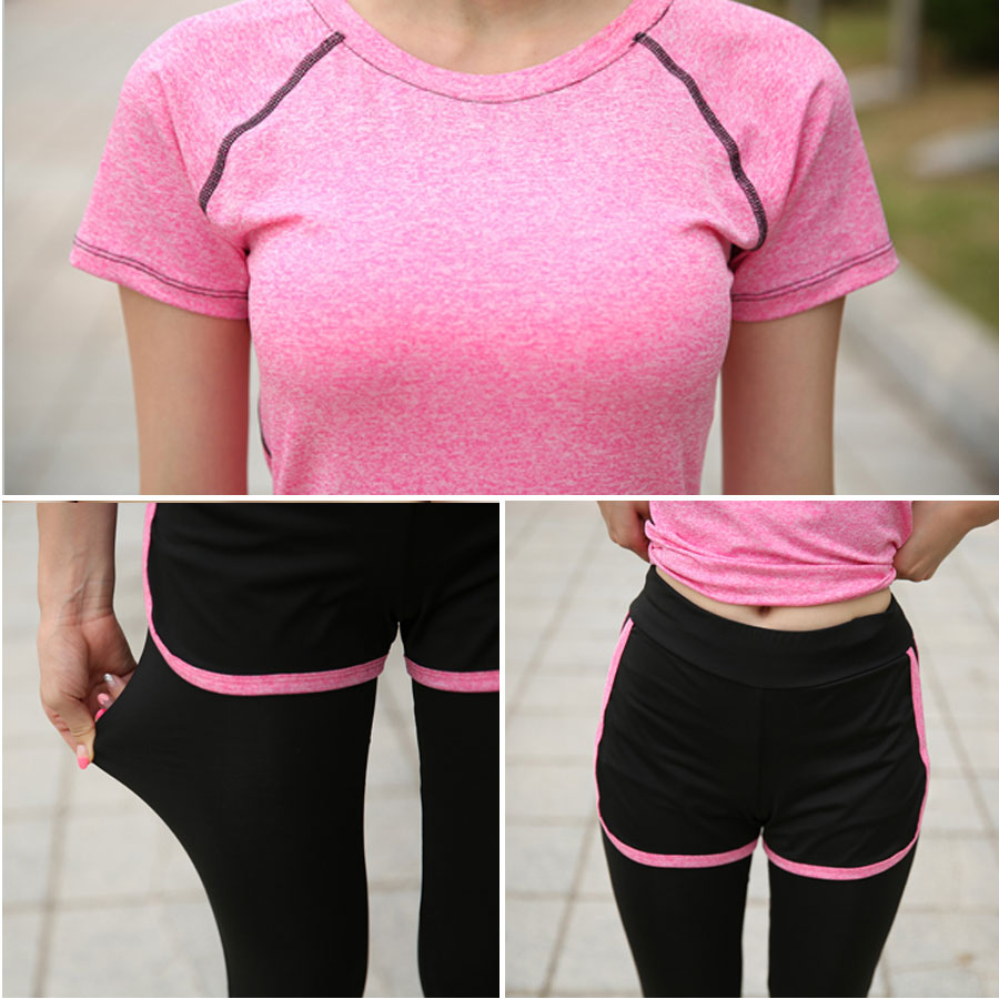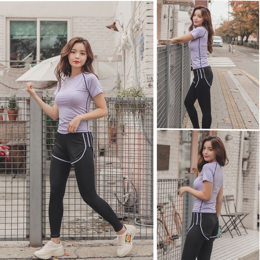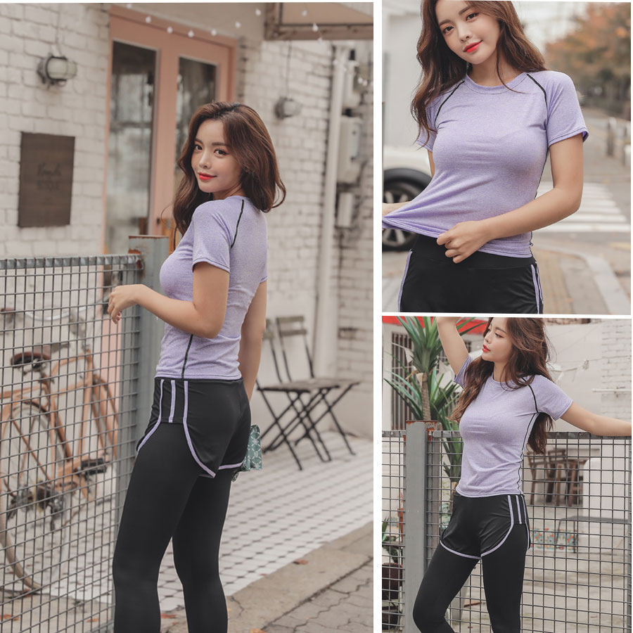 ヨガスポーツウェア セット ヨガ2点セット ヨガウェア 上下セット レディース 体型カバー 半袖 Tシャツ ハイウエスト ヨガパンツ レギンス ピラティス トレーニング ジム スポーツウェア 吸汗速乾 [L-Y17303-02]