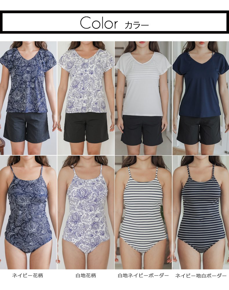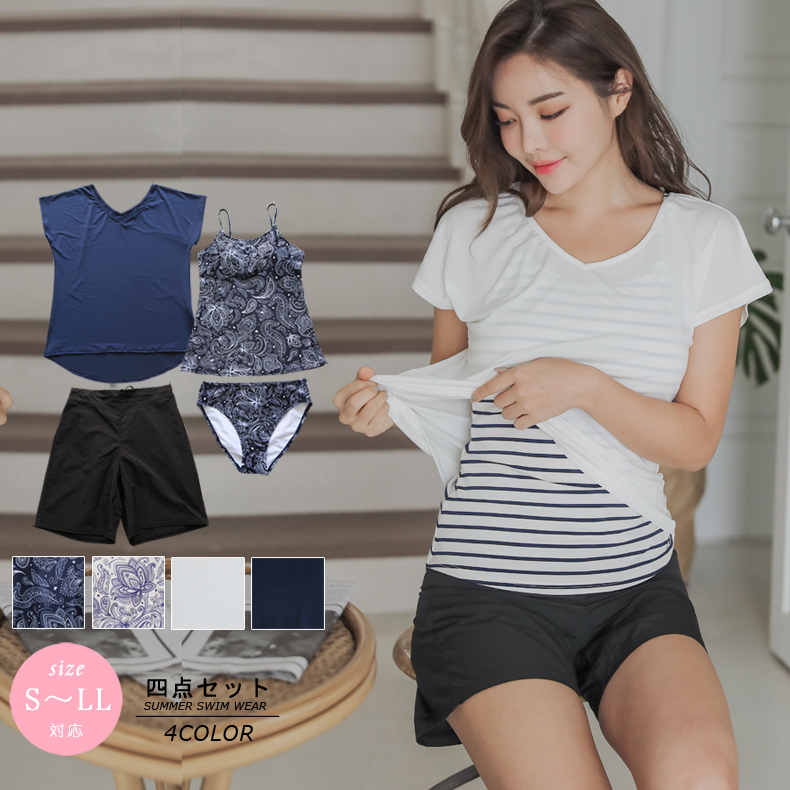 Tシャツとサーフパンツとボーダータンキニトプッスとショーツと水着4点セット