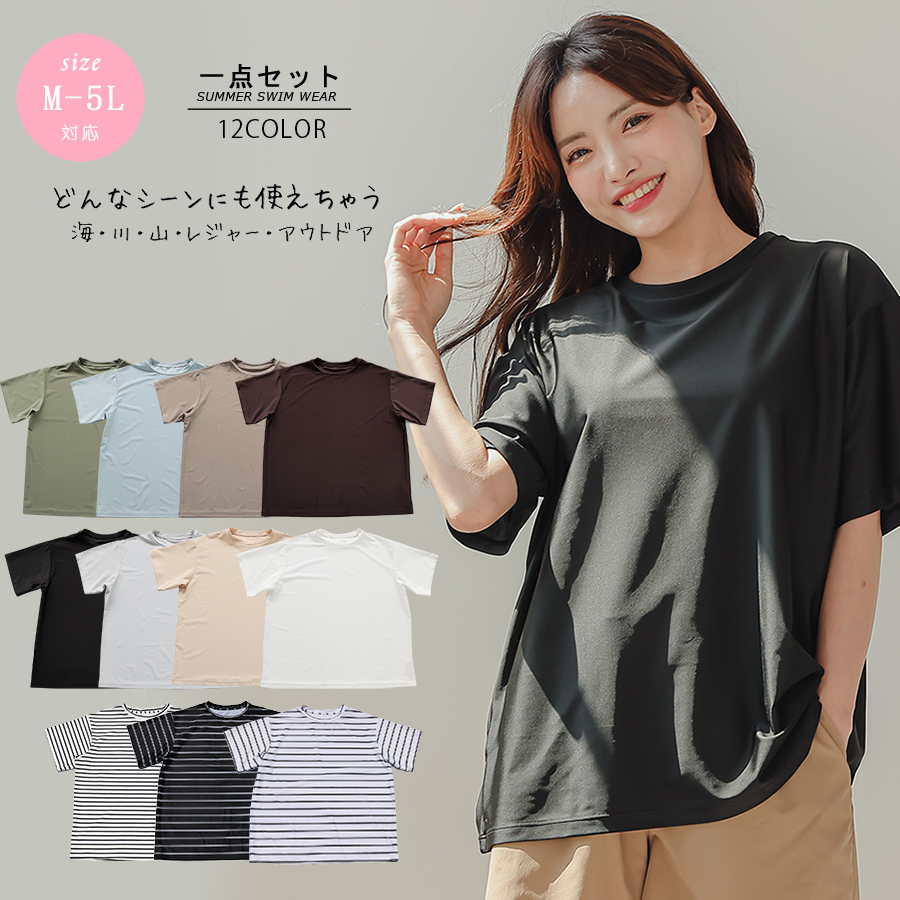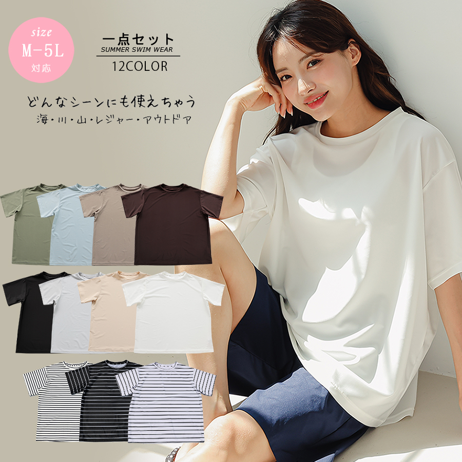 サイズはM〜5Lまで展開され、無地・ストライプ柄を含む11 色の豊富なバリエーションから選べます。速乾性に優れた素材を使用しているため、水に濡れてもすぐに乾き、快適に着用できます。水着の上から着るカバーアップとしてだけでなく、普段使いの T シャツとしても活躍する万能アイテムです。海・川・山・レジャー・アウトドアなど、どんなシーンにも使えるので、あなたのライフスタイルにぴったりフィットします!