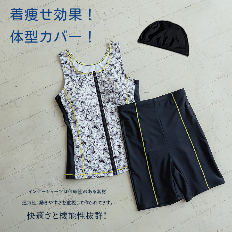 タンク 前ファスナー レディース フィットネス セパレート 体型カバー フィットネス水着 水着スイムウェア めくれ防止 ビキニ 女の子 タンキニ インナー 競泳水着