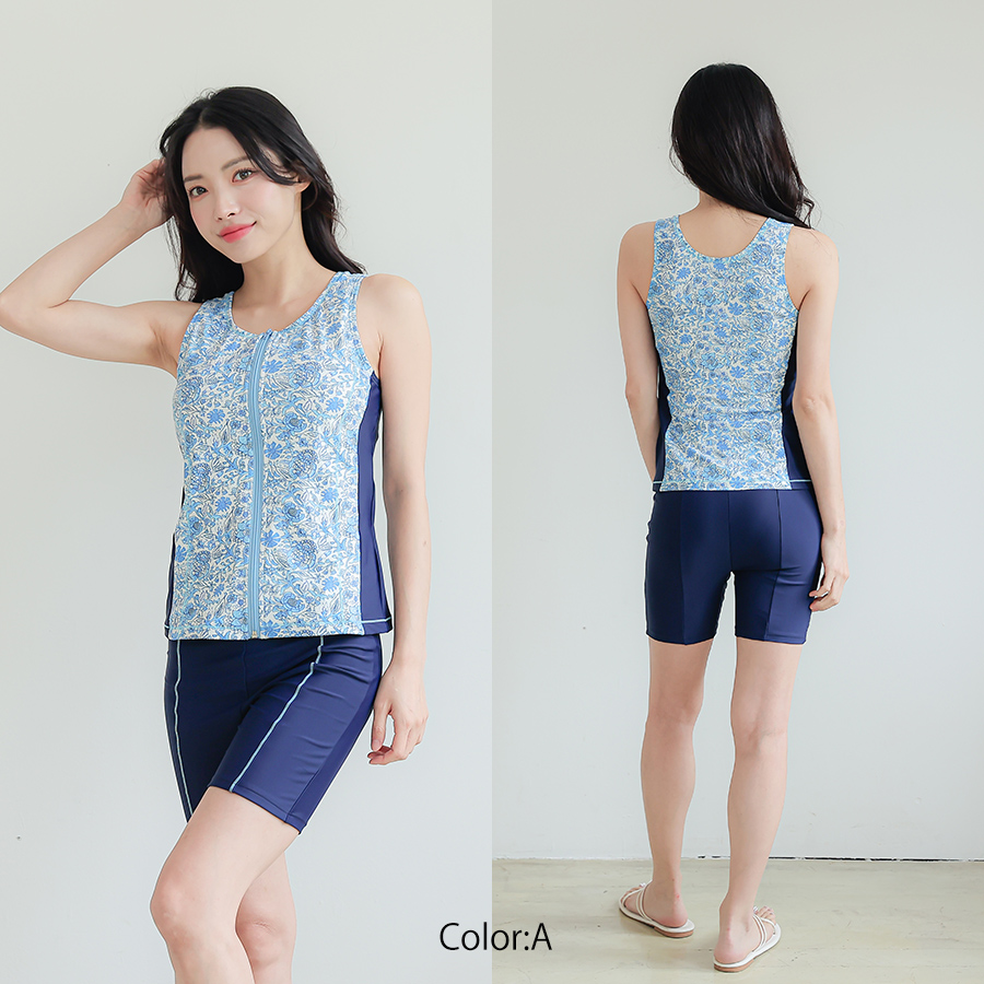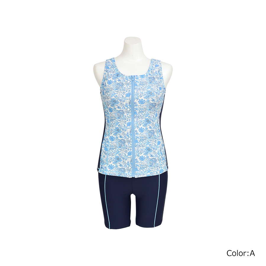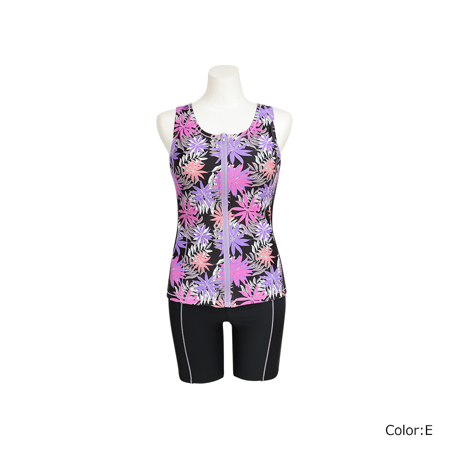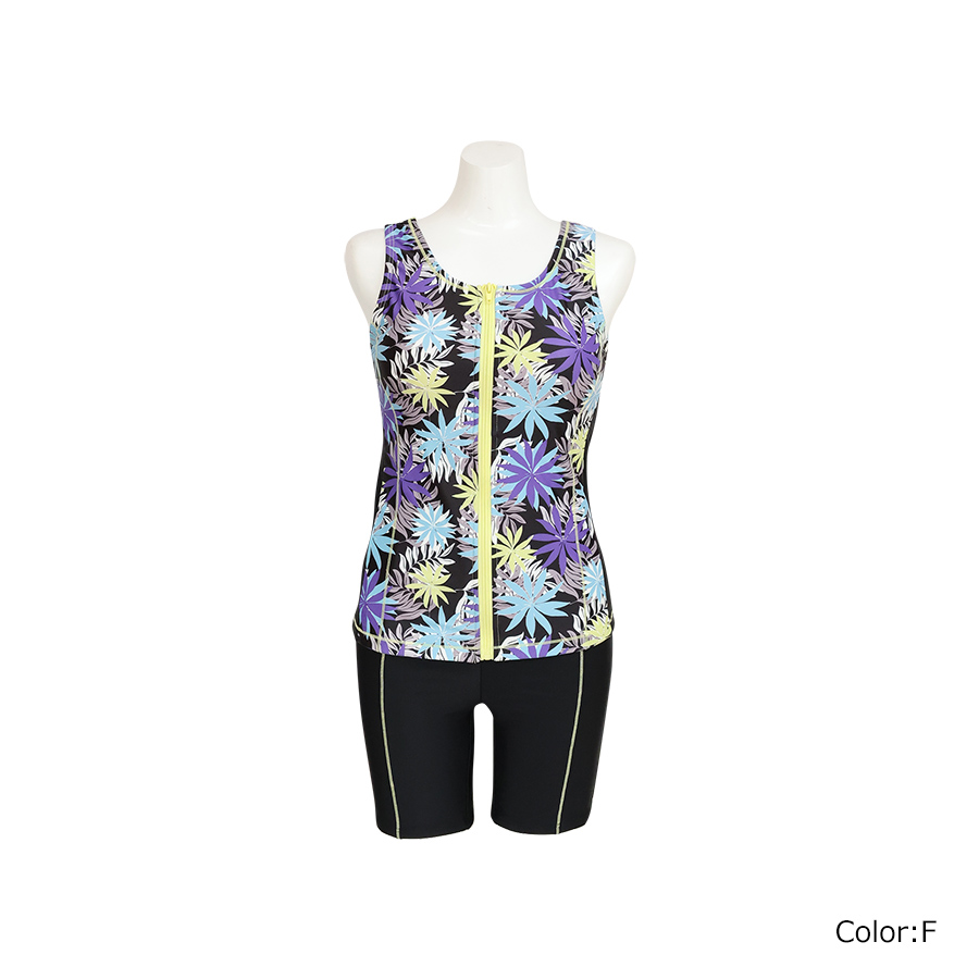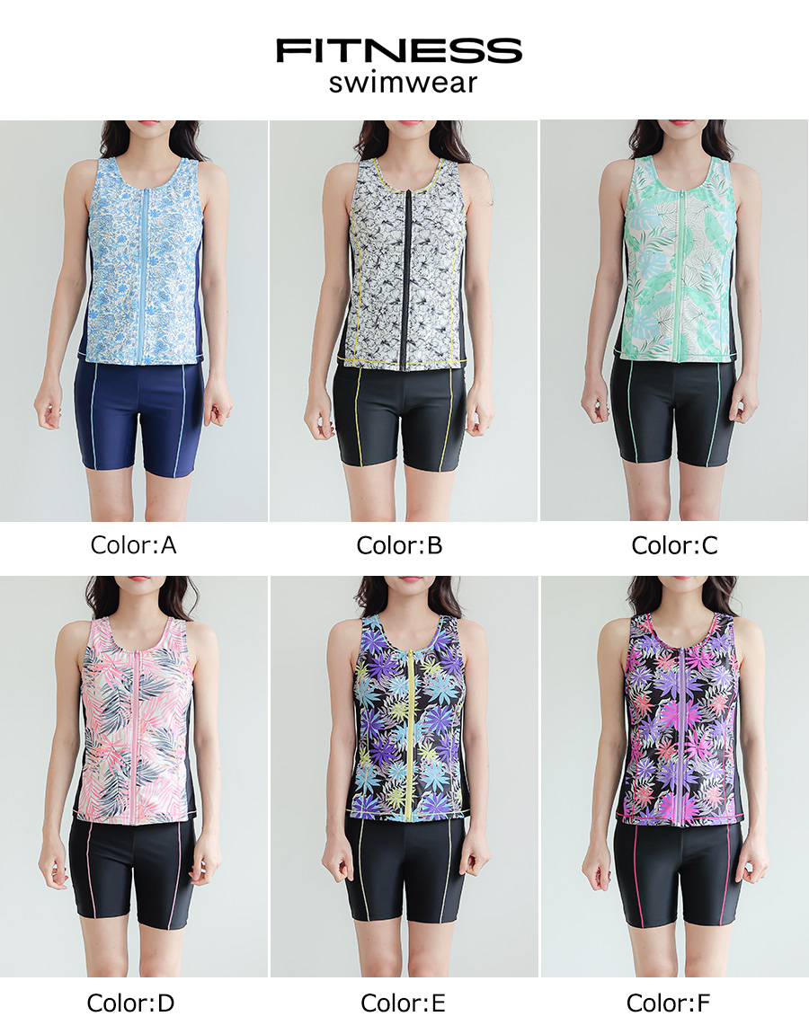 タンク 前ファスナー レディース フィットネス セパレート 体型カバー フィットネス水着 水着スイムウェア めくれ防止 ビキニ 女の子 タンキニ インナー 競泳水着 [ZC8701]