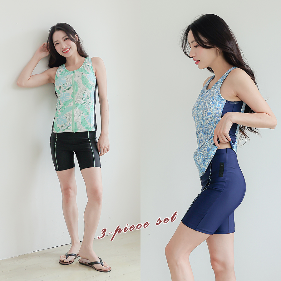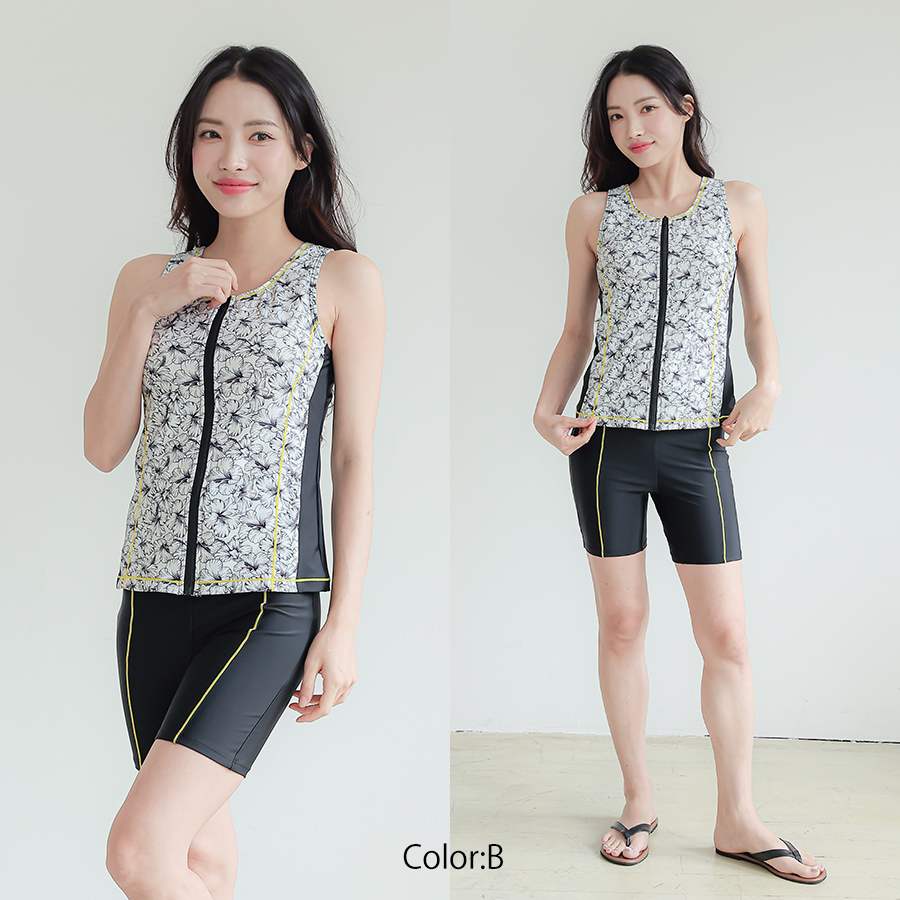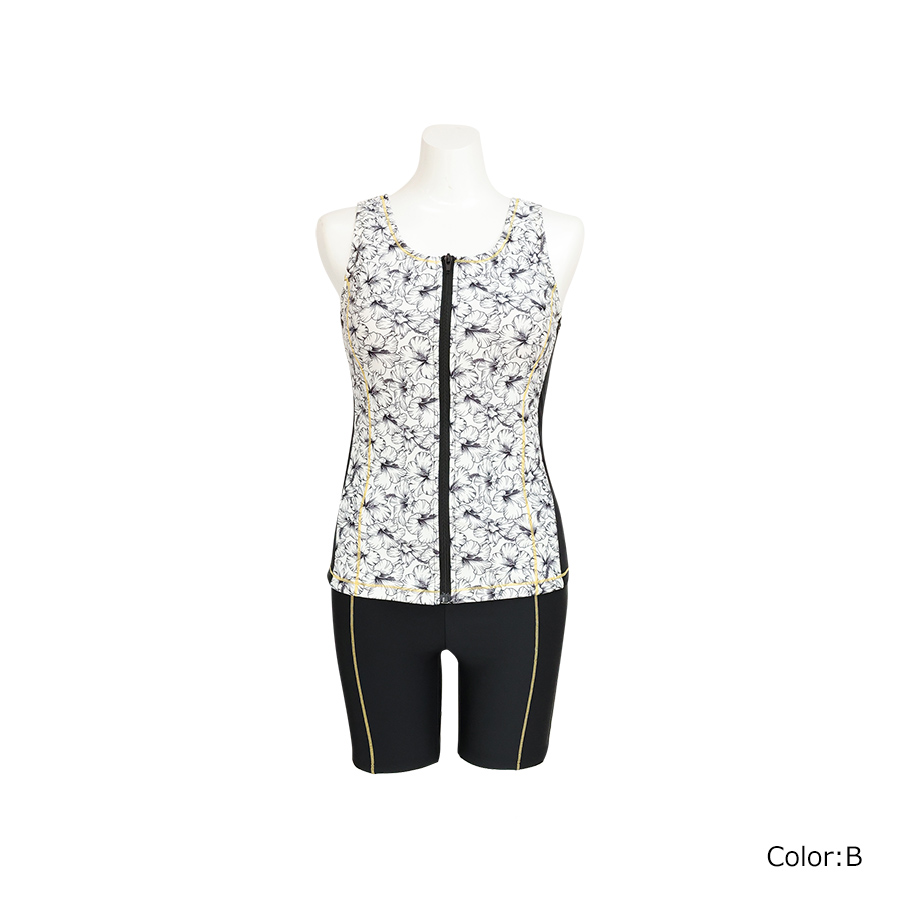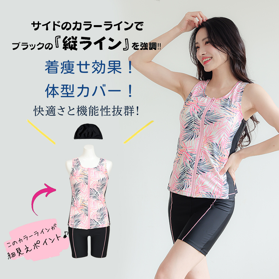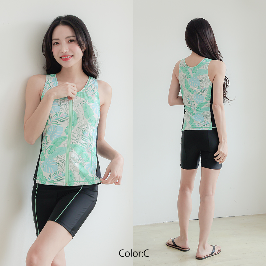 タンク 前ファスナー レディース フィットネス セパレート 体型カバー フィットネス水着 水着スイムウェア めくれ防止 ビキニ 女の子 タンキニ インナー 競泳水着 [ZC8701]