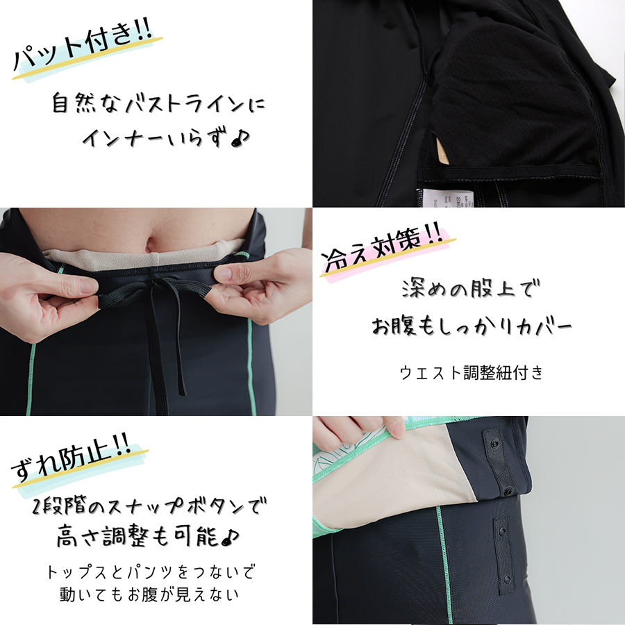 体型カバーも忘れていません。気になる部分をしっかりと隠すデザインにより、自分らしい魅力を引き出します。体型を気にせずアクティブに楽しむことができるため、初心者から上級者まで幅広くお勧めできます。特に、フィットネスでの使用や、ビーチでの水遊びに適しており、アクティブなシーンでも快適さをキープ。