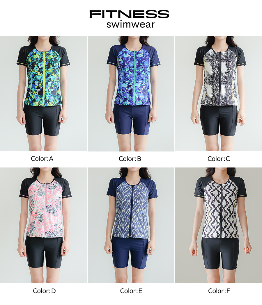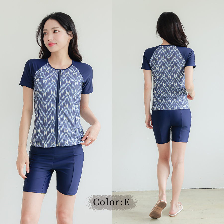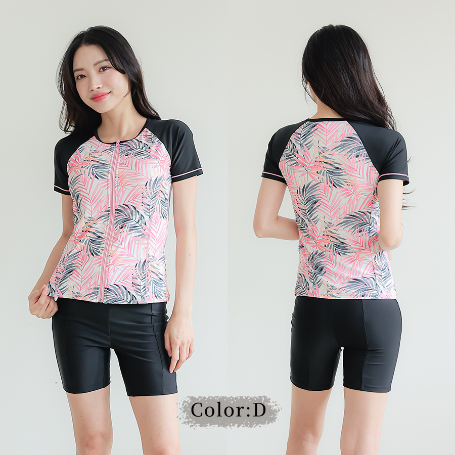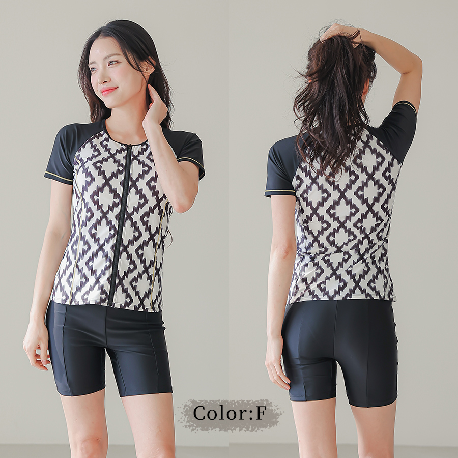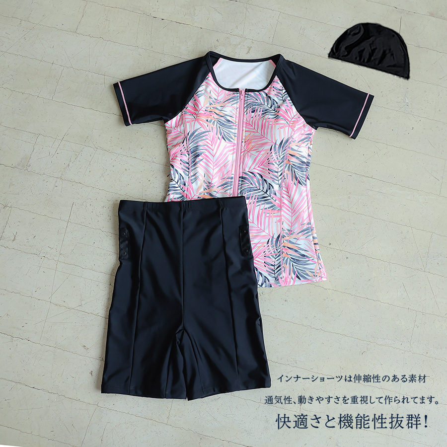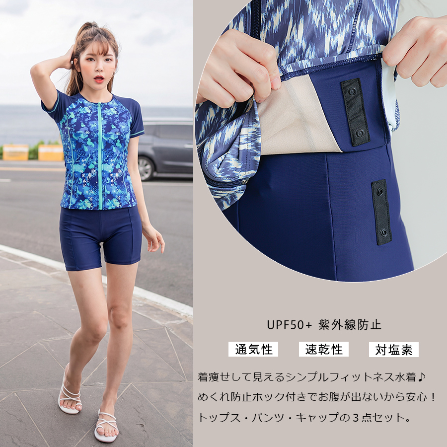 サウナ水着 めぐれ防止ボタン着き キャップセット プリント柄もの フィットネス水着セット レディース フィットネス水着 セパレート キャップ セット めくれ防止 [ZC8703]